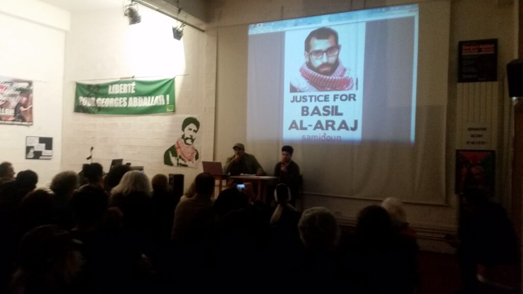 Khaled Barakat, the international coordinator of the Campaign to Free Ahmad Sa’adat, began his talk by saluting the young Palestinian leader and activist, Basil al-Araj, shot down by Israeli occupation forces as he resisted on 6 March. With an image of al-Araj projected behind him, Barakat noted that both al-Araj and Abdallah were deeply committed to revolutionary principle, even at deep personal cost to themselves, over the years.