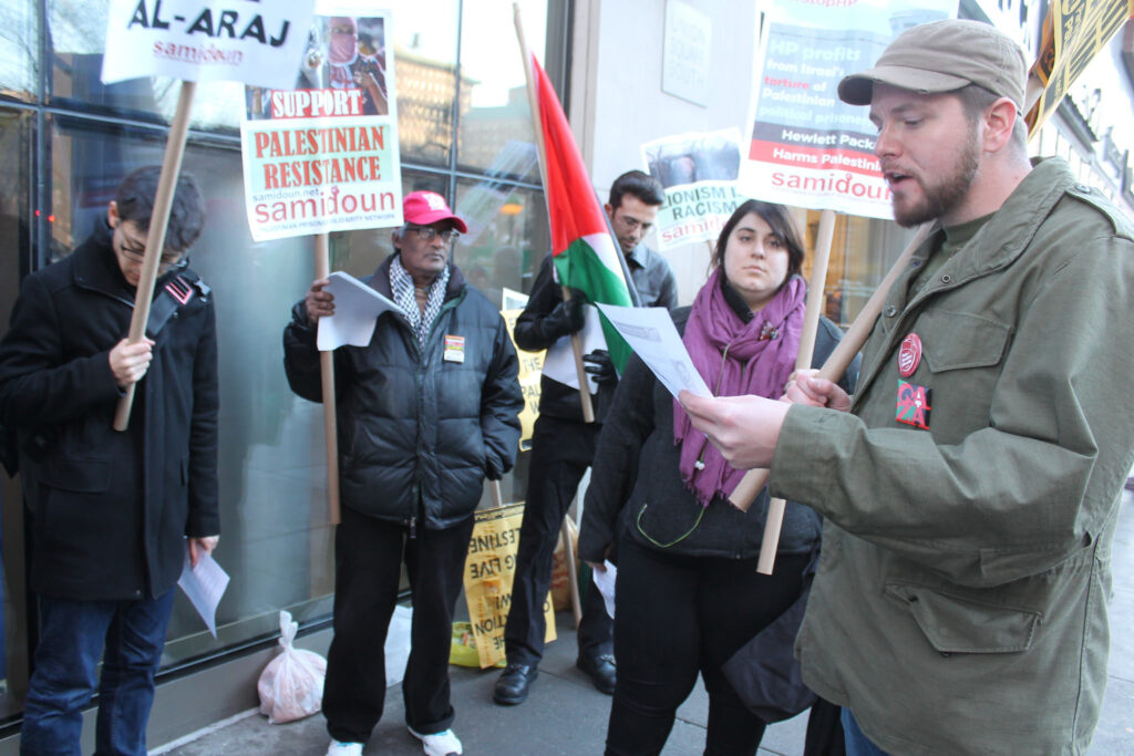 Samidoun will protest again in New York City on Friday, 24 March, at 5:30 pm outside the Best Buy in Union Square at 52 E. 14th Street in Manhattan. The protest will once again demand an end to HP’s profiteering from Israeli apartheid and will focus on the case of Palestinian administrative detainee and hunger striker Mohammed Alaqimah, who will reach his 28th day of hunger strike against his imprisonment without charge or trial on Friday. All are welcome to attend and participate in Friday’s demonstration. Samidoun activists will also join in the 26 March protest in Washington, DC to support Palestine and protest AIPAC.