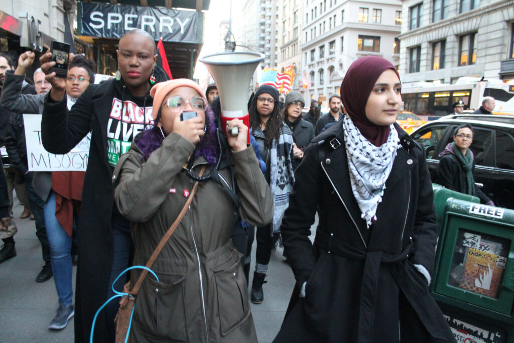The protest denounced racism and white supremacy, highlighting ongoing attacks on the Black community, including police and other state repression and violence. Protesters marched to Herald Square, where they called for action against escalating racist repression against Black people as well as Muslims, Arabs and other oppressed communities.