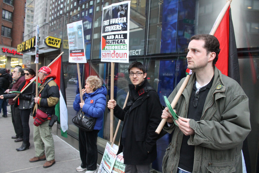 Protesters in New York City gathered on Friday, 24 March outside the Best Buy in Union Square to demand freedom for Palestinian prisoners and to urge shoppers to boycott HP products until the corporation ends its contracts with Israeli prisons, checkpoints and other repressive mechanisms.