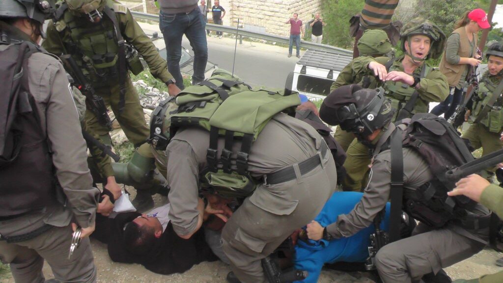 At the olive tree action, the #DismantleTheGhetto organizers were attacked by settlers but continued, marching to the center of al-Khalil, which has largely been forcibly shut down by the Israeli occupation and its settlements. As the Palestinians demonstrated for the right to their land, Israeli occupation forces declared the area a closed military zone, attacking the demonstration and arresting Dwaik, Dana, Arar and Khatib, later charging them with participating in an “illegal demonstration” in a closed military zone.