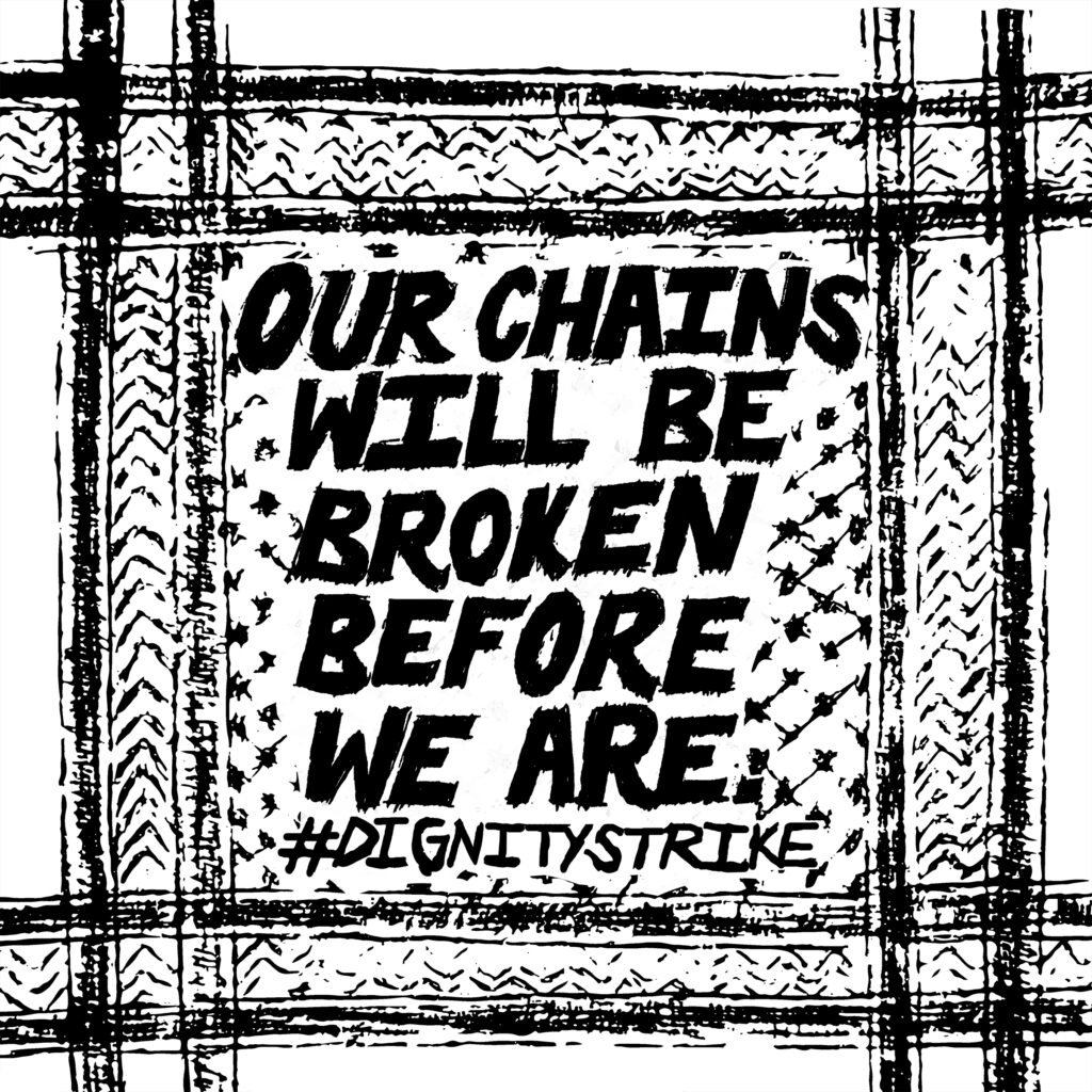 On Sunday, 14 May, Palestinian prisoners entered into their 28th day of hunger strike in Israeli prisons. 1500 Palestinian prisoners launched the strike on 17 April, Palestinian Prisoners’ Day, for a series of basic demands, including: end to the denials of family visits, proper health care and medical treatment, the right to pursue distance higher education, and an end to solitary confinement and administrative detention, imprisonment without charge or trial.