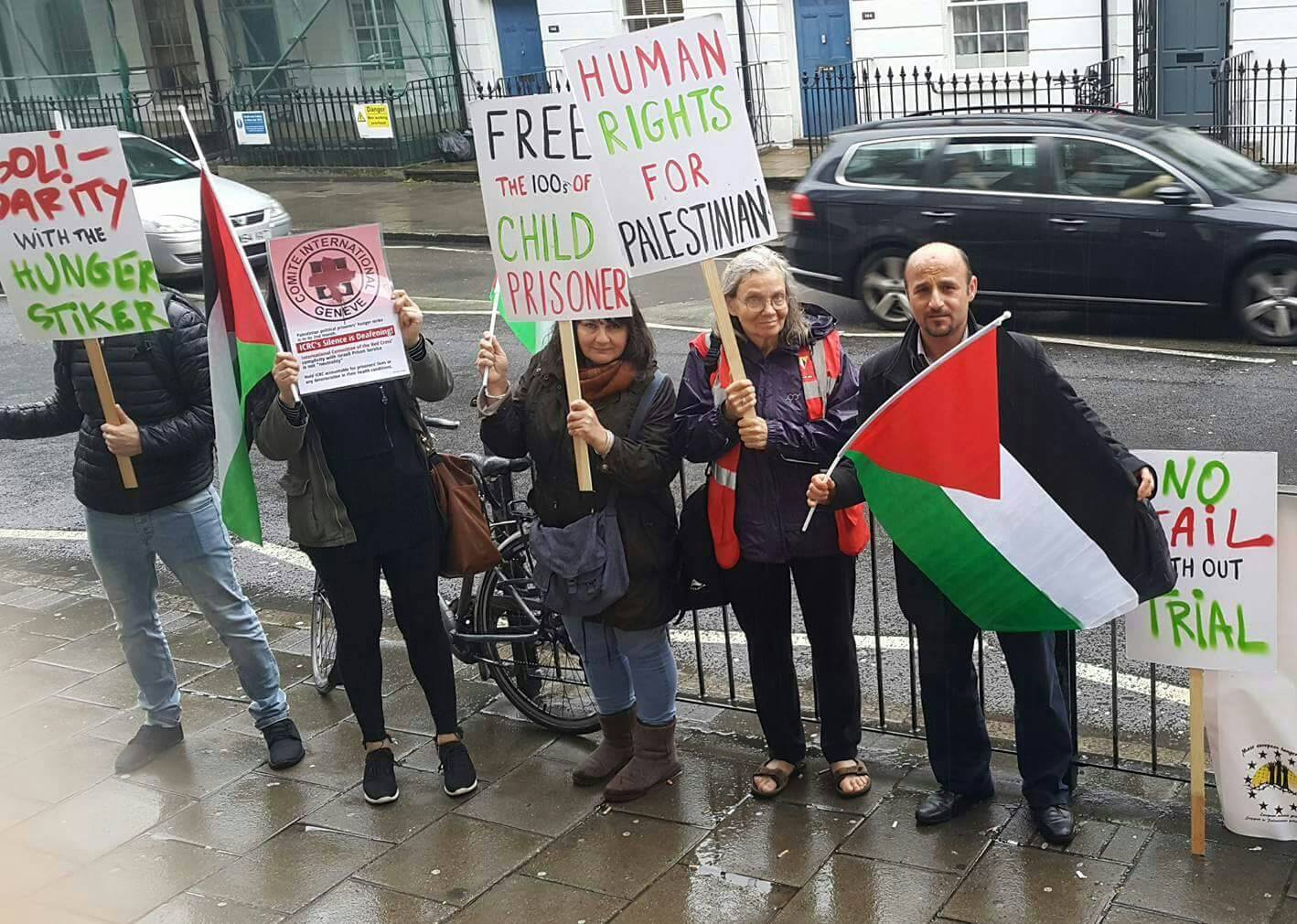 In Belfast, protesters gathered at the famous International Wall where the Irish republican struggle is highlighted in murals – along with a number of murals in support of Palestine – for a protest in support of the Palestinian prisoners, while in London, activists responded to the call for action to pressure the International Committee of the Red Cross by picketing and delivering a letter to the ICRC’s office, demanding meaningful action for Palestinian prisoners.