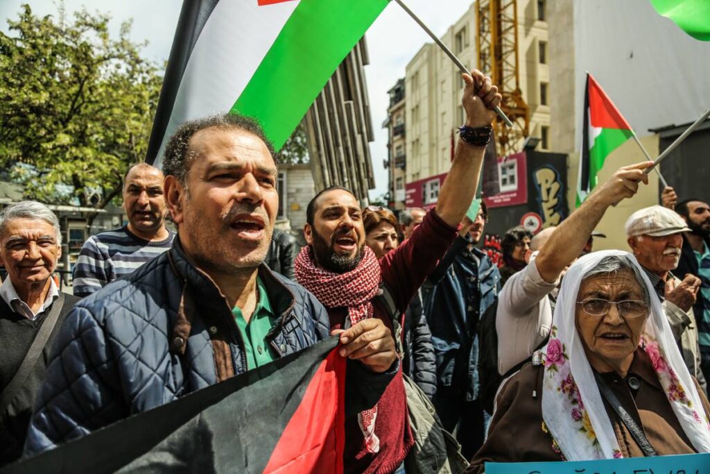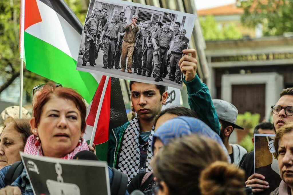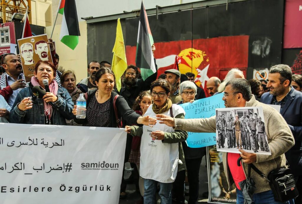 Samidoun Palestinian Prisoner Solidarity Network and BDS Turkey organized a demonstration in Istanbul’s Galatasaray Square on Saturday, 6 May, with the support of the Solidarity with Prisoners Initiative (TDI), the Human Rights Association (İHD) and the Turkish Human Rights Foundation (TİHV), in support of Palestinian prisoners on hunger strike in Israeli prisons.