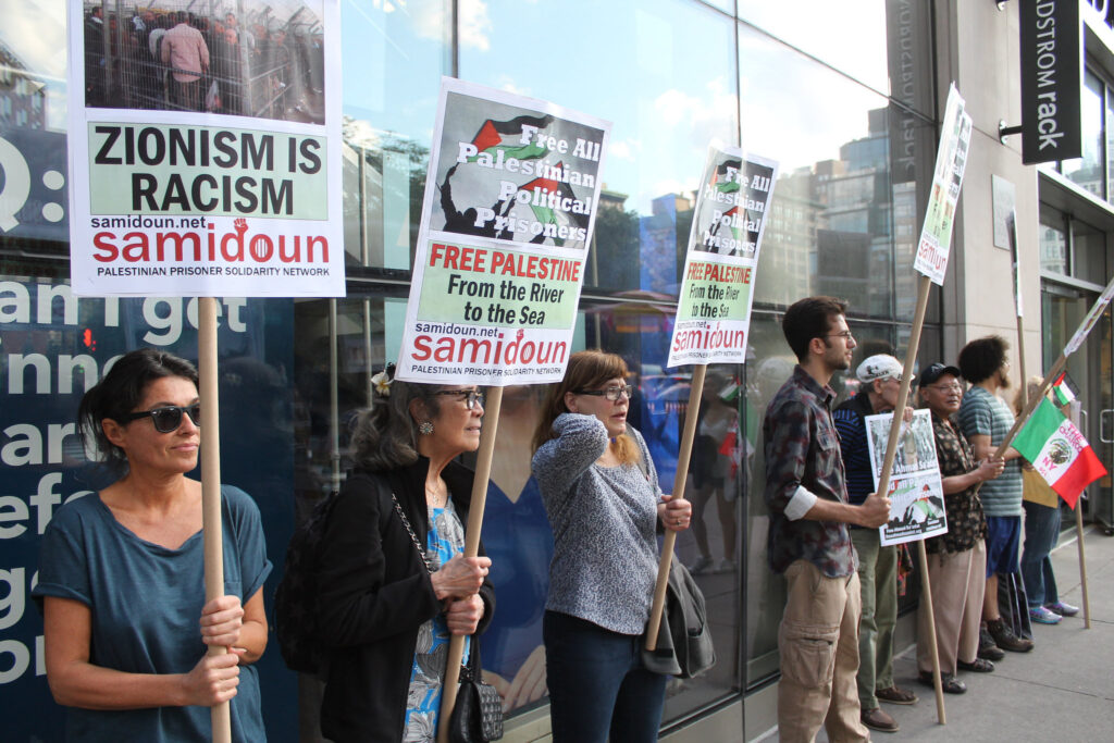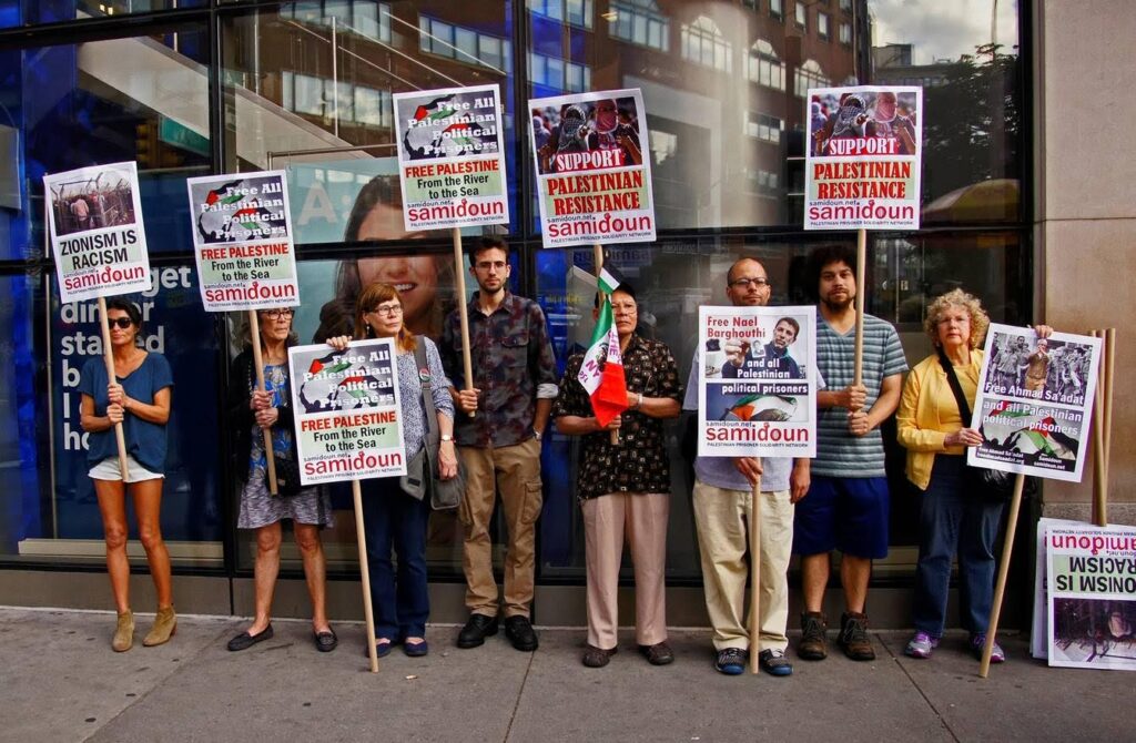 Samidoun Palestinian Prisoner Solidarity Network protests weekly outside the Best Buy as part of the international #StopHP campaign and in support of Palestinian political prisoners’ struggle for freedom. All supporters of justice in Palestine are invited to attend the weekly Friday protests in New York City and demand freedom for Palestinian prisoners, the Palestinian people and Palestinian land.