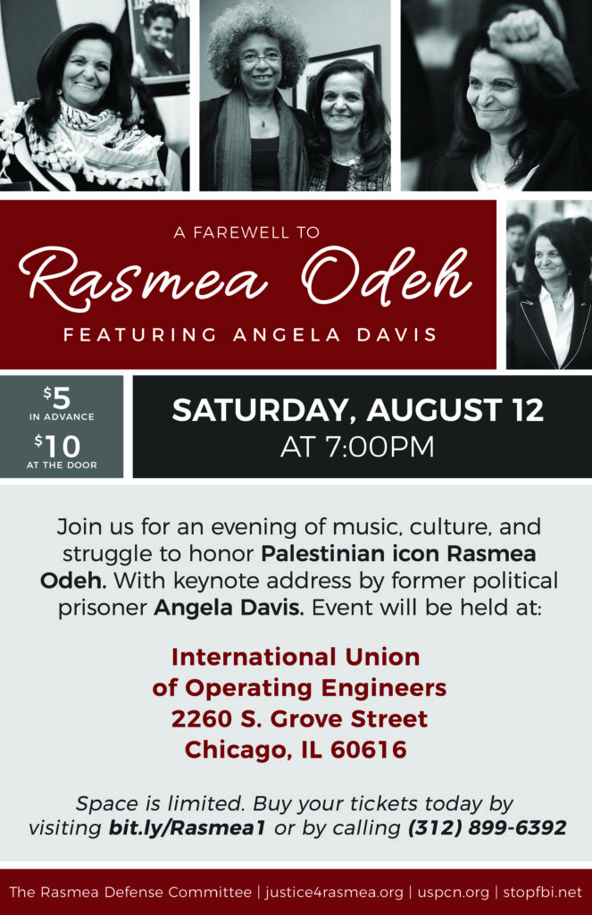 Join the Rasmea Defense Committee for an evening of music, culture and struggle to honor Palestinian icon Rasmea Odeh. With keynote address by former political prisoner Angela Davis.