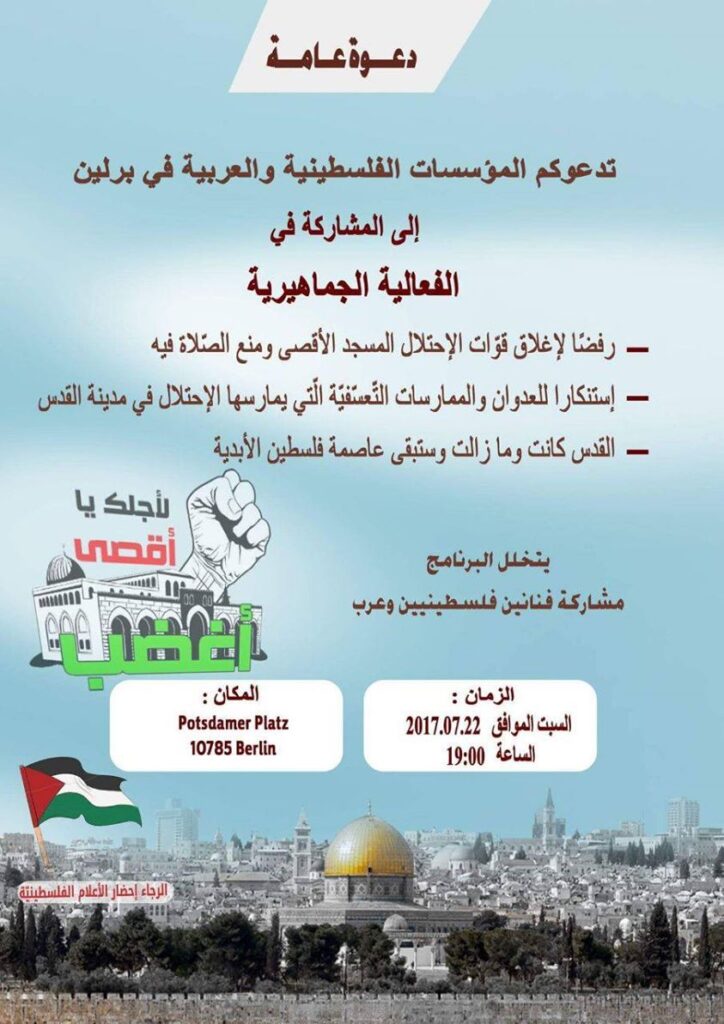 Stand with Palestinian and Arab organizations to defend Al-Aqsa, Jerusalem and Palestine from Israeli occupation attacks.