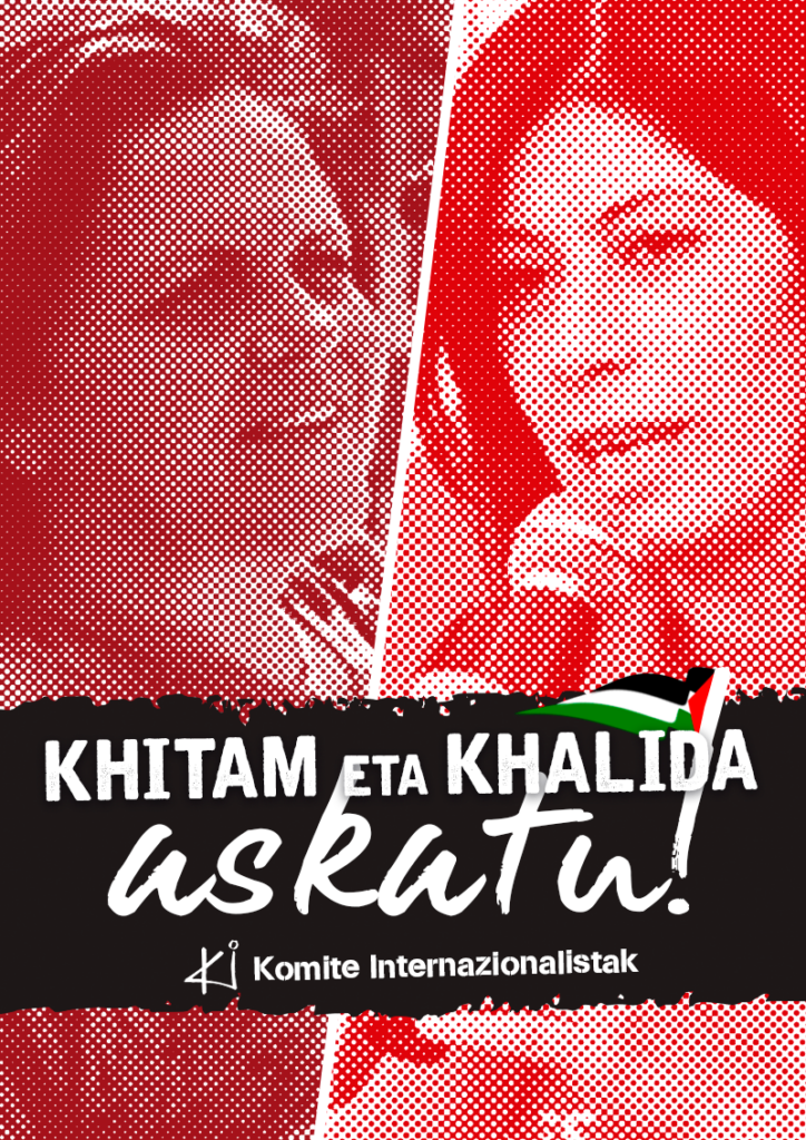As Komite Internazionalistak, we consider the detention of these two comrades who struggle for the liberation of their people and the emancipation of women to be an attack on democracy, women, and human rights. Therefore, we denounce the illegal detention of the comrades and demand the immediate release of Khalida Jarrar and Khitam Saafin and the other nine detainees.
