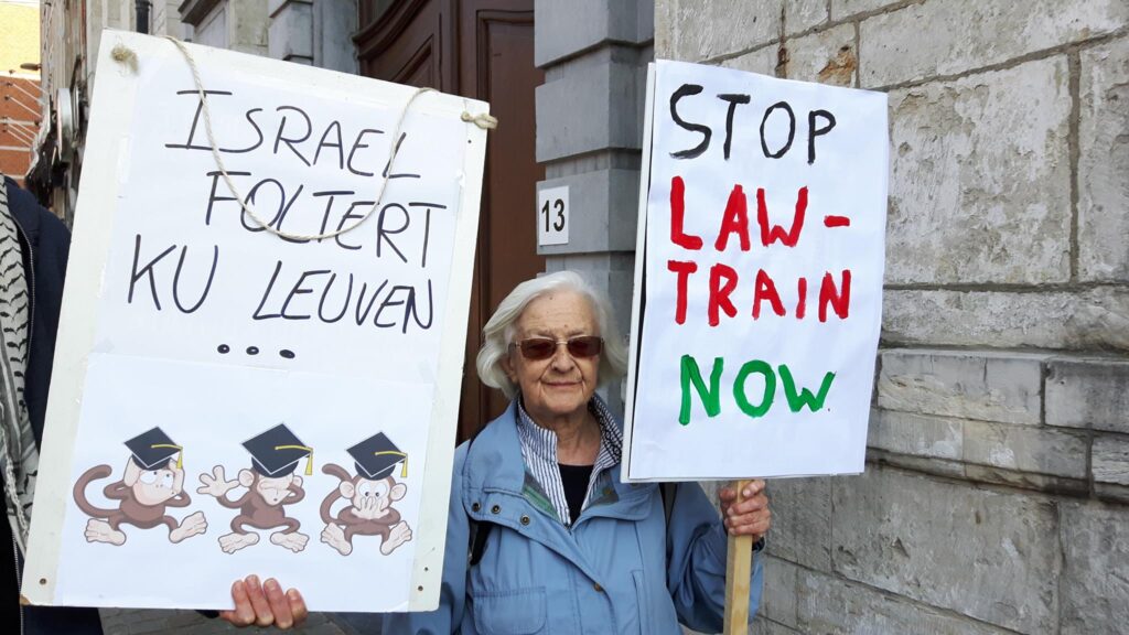 In 2016, the Stop Law Train campaign engaged in actions at the procession in protest against the participation of KULeuven in LAW-TRAIN, a research project on interrogation techniques funded by the European Union and involving the Israeli police, Bar-Ilan University alongside several European police agencies. Such cooperation with human rights violators is unacceptable, and faculty and students at KULeuven have waged a campaign to demand withdrawal from LAW-TRAIN, including 100 academics at the university and over 3,000 signatories of a national Belgian petition against the program.