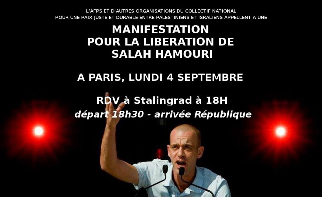 AFPS, along with other organizations of the National Collective for a Just and Lasting Peace between Palestinians and Israelis, calls for a demonstration for the release of Salah Hamouri.