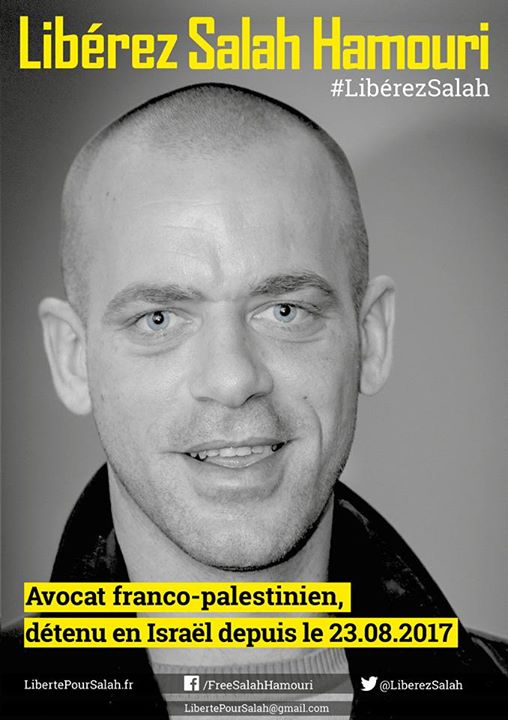 Rally to free French-Palestinian human rights defender Salah Hamouri, newly re-imprisoned by Israel without charge or trial, after he was seized in a pre-dawn raid on his home on 23 August. No to three months of imprisonment, no to six months, freedom now!