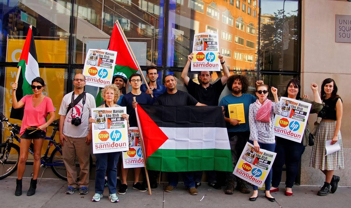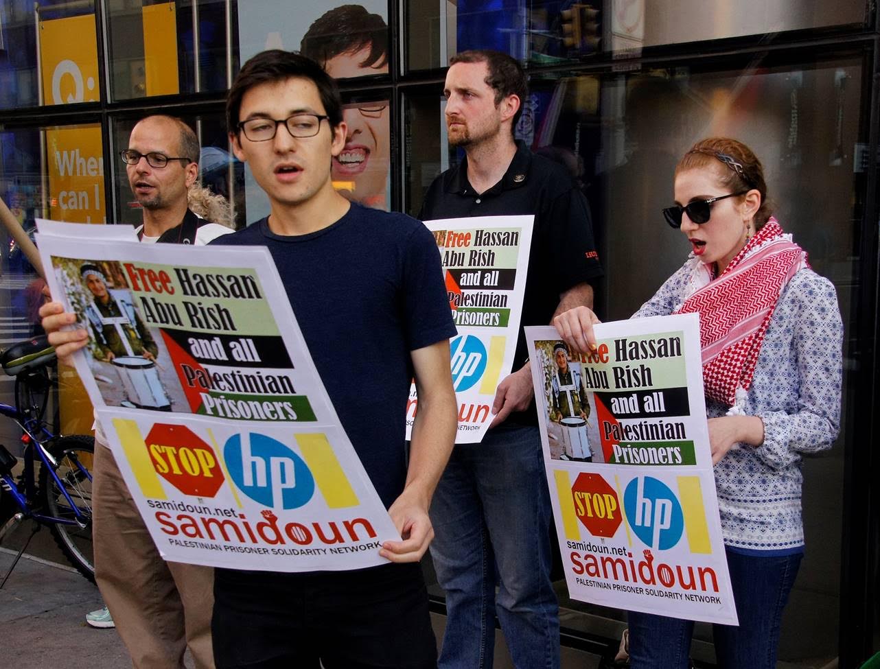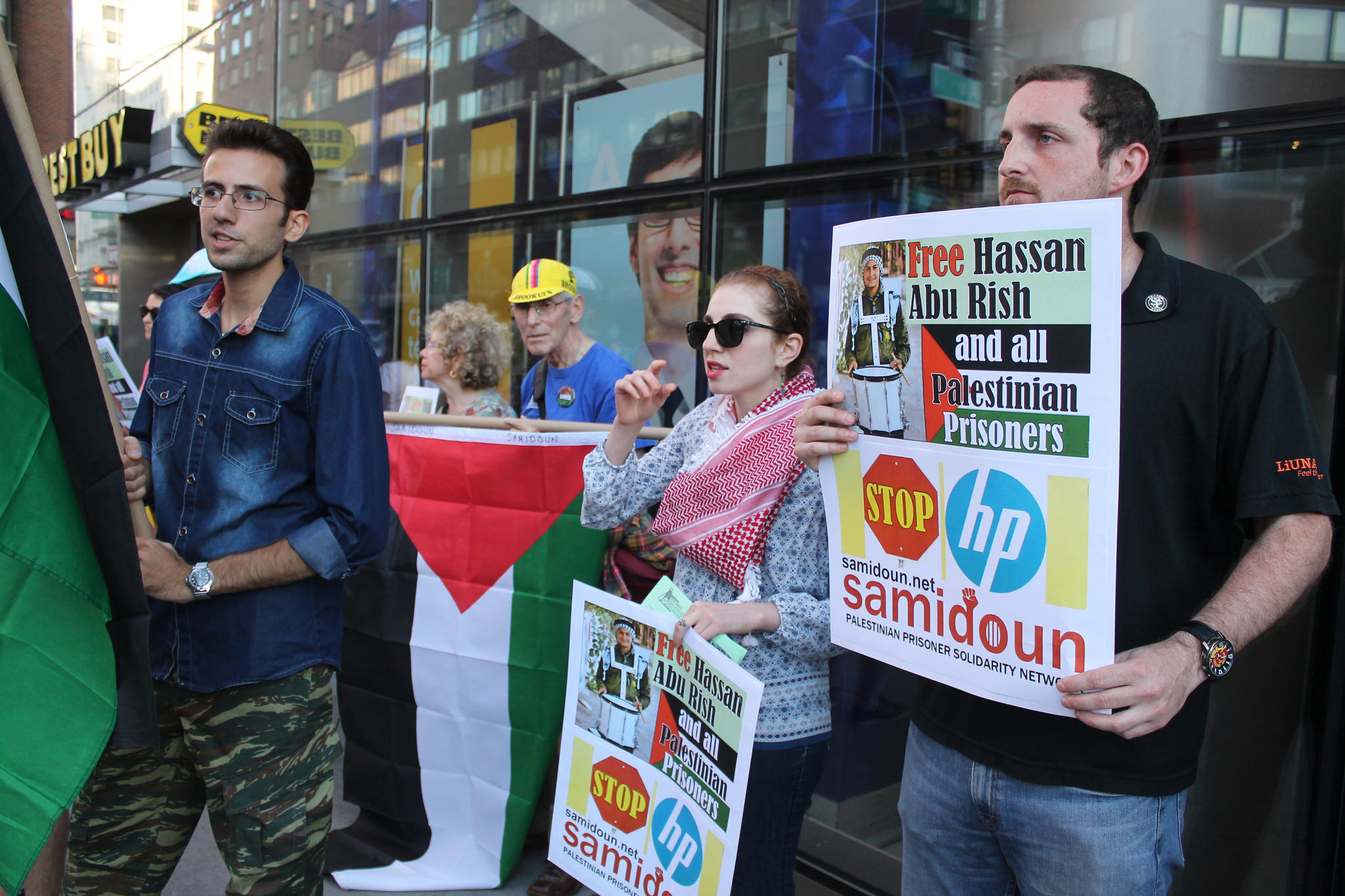 Protesters gathered in New York City on Monday, 4 September to protest the imprisonment of Palestinian teen Hassan Abu Rish and his fellow Palestinian child prisoners held in Israeli jails. The protest, organized by Samidoun Palestinian Prisoner Solidarity Network, took place outside the Union Square Best Buy electronics store, which sells Hewlett-Packard products. HP is subject to a global boycott campaign for its profiteering from Israeli occupation, oppression and apartheid through contracting with the Israeli prison system, military forces and system of checkpoints and ID cards.