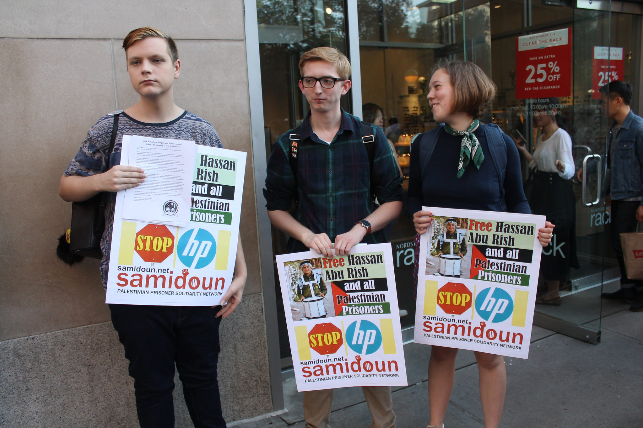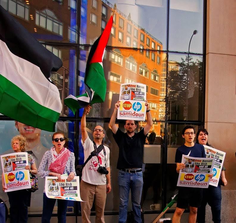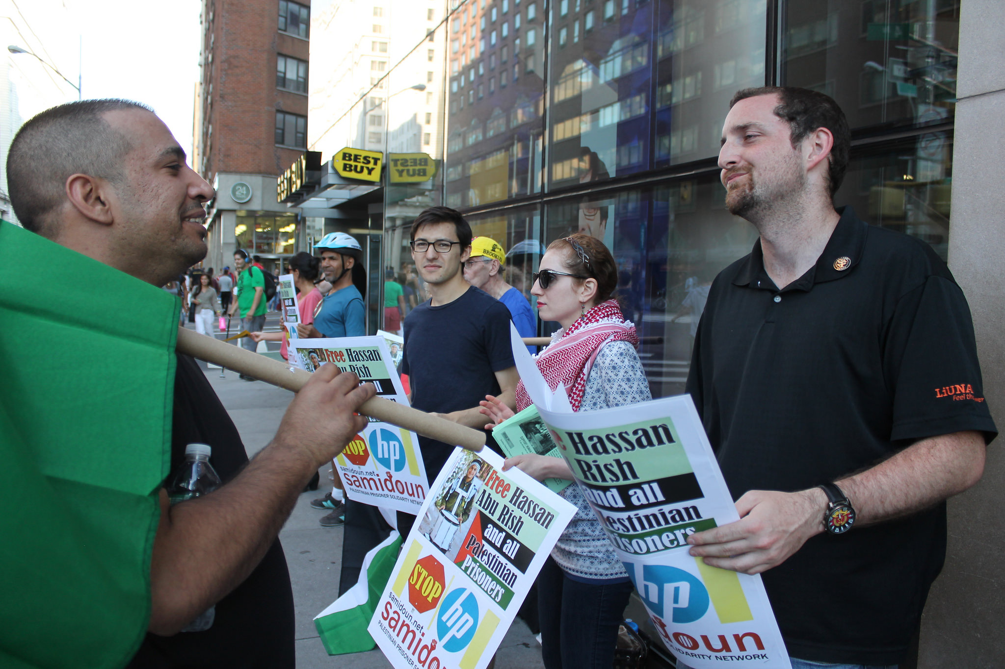 Protesters gathered in New York City on Monday, 4 September to protest the imprisonment of Palestinian teen Hassan Abu Rish and his fellow Palestinian child prisoners held in Israeli jails. The protest, organized by Samidoun Palestinian Prisoner Solidarity Network, took place outside the Union Square Best Buy electronics store, which sells Hewlett-Packard products. HP is subject to a global boycott campaign for its profiteering from Israeli occupation, oppression and apartheid through contracting with the Israeli prison system, military forces and system of checkpoints and ID cards.
