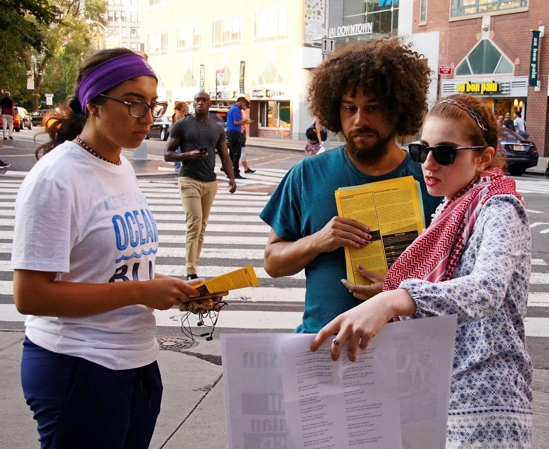 Activists from a number of organizations joined Samidoun in the protest, including a group from Students and Youth for a New America (SYNA), expressing solidarity with Palestinian youth imprisoned in Israeli jails.