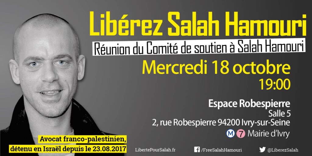This week, Elsa Lefort, Jean-Claude Lefort and Maitre Tourne met with the diplomatic group from the French government. They stated following the meeting: “We understood from our conversation with the diplomatic cell of the Elysée that France’s action would not be limited to consular protection alone, but that to intervene so that the arbitrary detention of a French national, in this case Salah Hamouri, ceases. We remain mobilized and waiting for concrete progress.”