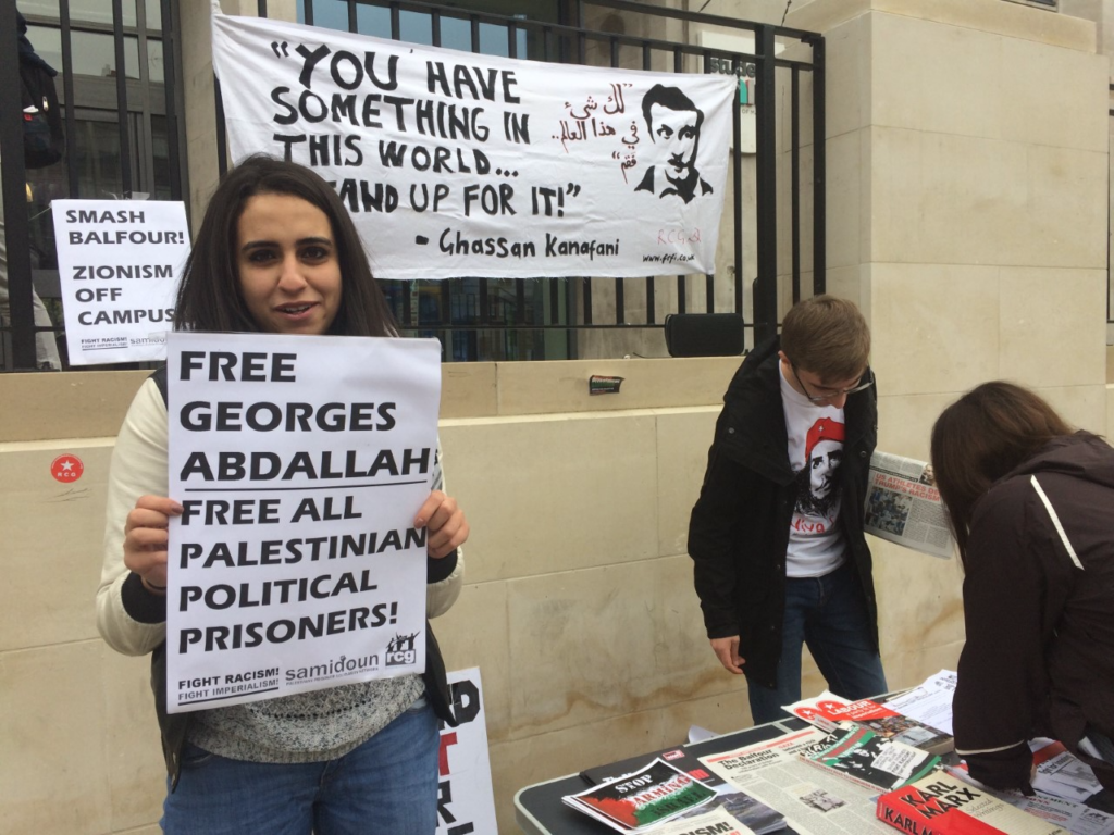 Fight Racism! Fight Imperialism! and other student organizations at the University of Manchester protested and held an information table on 18 October in solidarity with Georges Abdallah and Palestinian prisoners in Israeli jails. The event also came as part of the run-up to a large protest on 31 October against a celebration of the Balfour Declaration officially sponsored by the University.