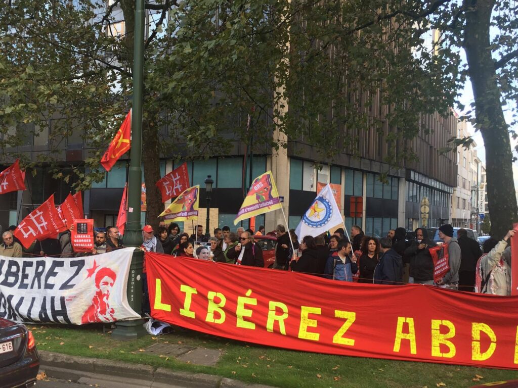 Over 100 people joined a demonstration organized by Secours Rouge on 20 October across from the French Embassy in Brussels. Participants included Secours Rouge organizers, Samidoun members and Palestinian community organizers as well as participants in a number of left and anti-colonial organizations. The outdoor protest was followed by a solidarity evening for Georges Abdallah and other political prisoners, organized by Secours Rouge.