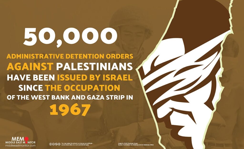 Administrative detention orders are used to imprison Palestinians without charge or trial. Issued for one to six months at a time, these orders are indefinitely renewable. Palestinians have spent years at a time jailed under administrative detention. There are over 450 Palestinians out of a total of over 6,200 Palestinian political prisoners jailed without charge or trial under administrative detention.
