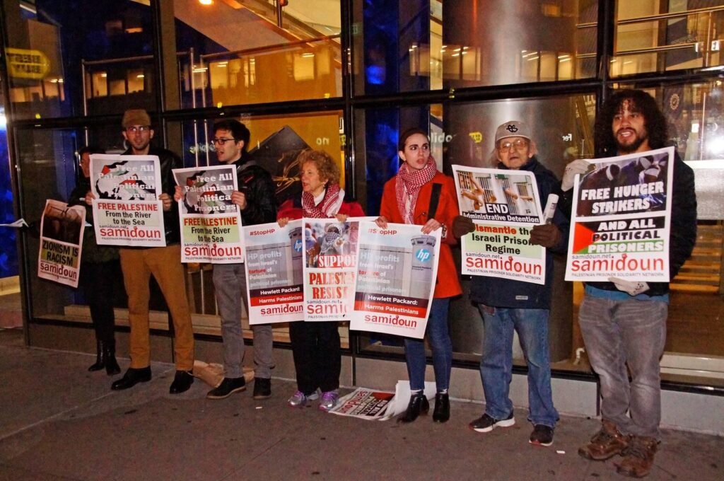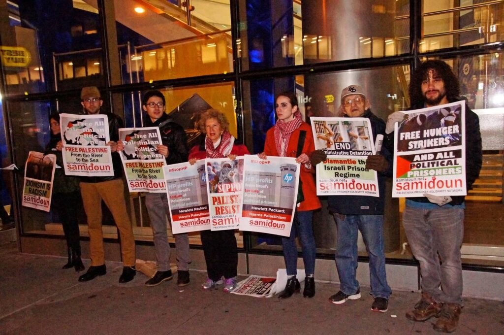 New Yorkers protested on Monday, 13 November for the release of hunger-striking Palestinian prisoners in Israeli jails held without charge or trial. The protesters also urged shoppers to boycott HP (Hewlett-Packard) consumer products because of HP’s ongoing contracts with Israeli occupation prison system, military and other systems of apartheid and colonization in Palestine.