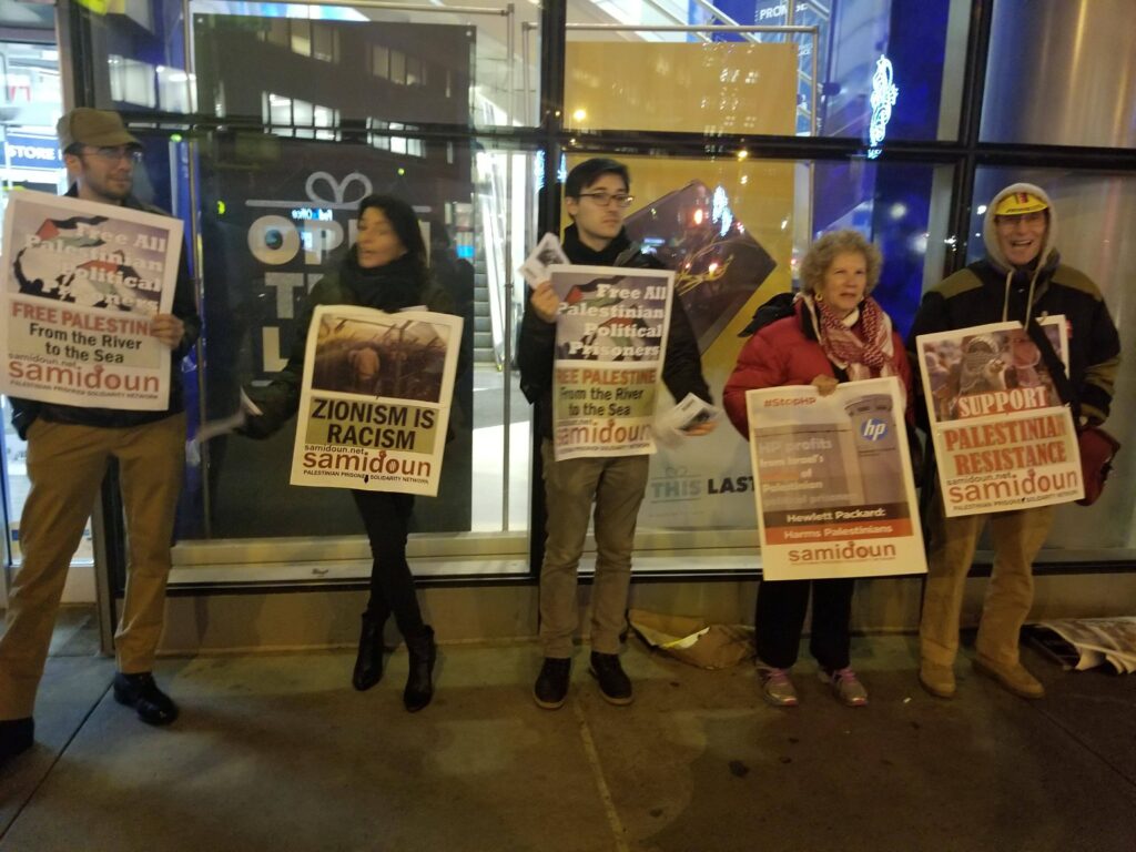 New York Samidoun activists are organizing another protest to free the Palestinian prisoners and support the hunger strikers on Monday, 20 November at 5:00 pm outside the Best Buy electronics store in Union Square in Manhattan. All supporters of Palestine and the Palestinian people are encouraged to attend to spread the word about the HP boycott, especially as the holiday shopping season approaches.