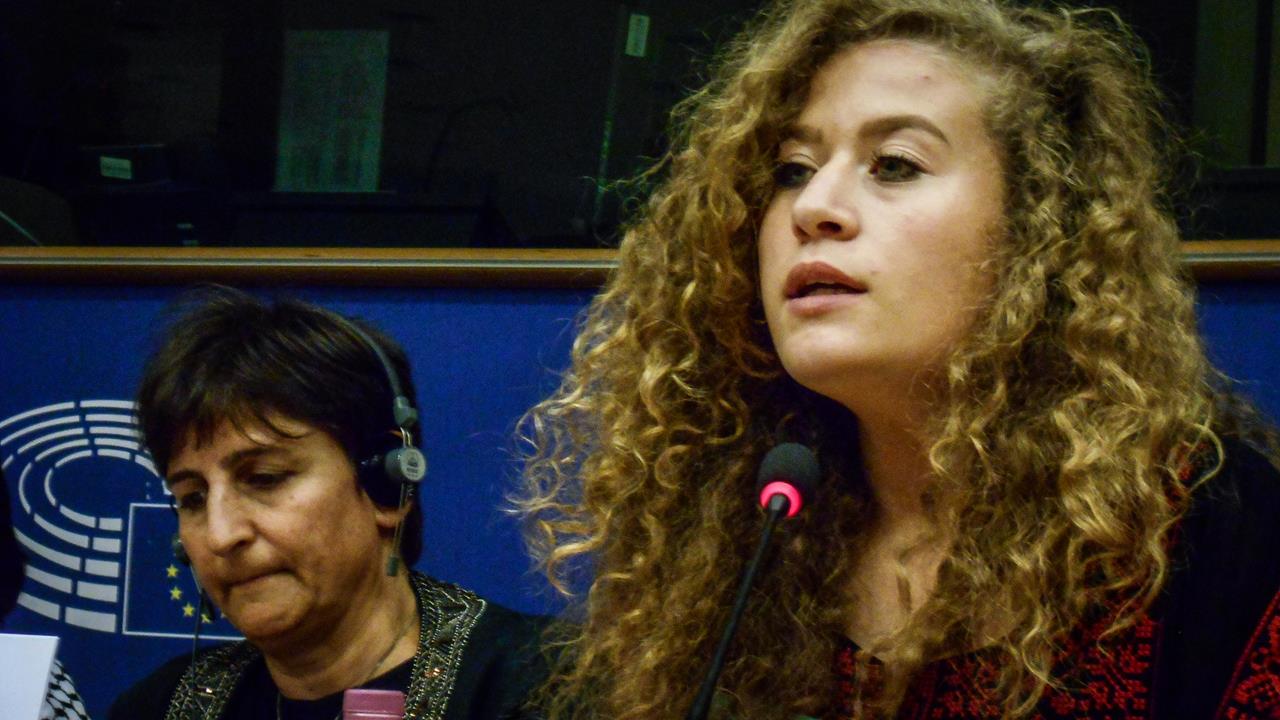 Ahed has become internationally known for her defense of Palestinian rights under occupation, including her defense of her younger brother when he was seized by an occupation soldier and regular protests against land confiscation targeting Nabi Saleh and other villages around Ramallah. She has spoken internationally, including in Turkey, South Africa, and in the European Parliament in a conference earlier this year on women in Palestinian resistance, where she spoke alongside Leila Khaled, Sahar Francis and several members of parliament.