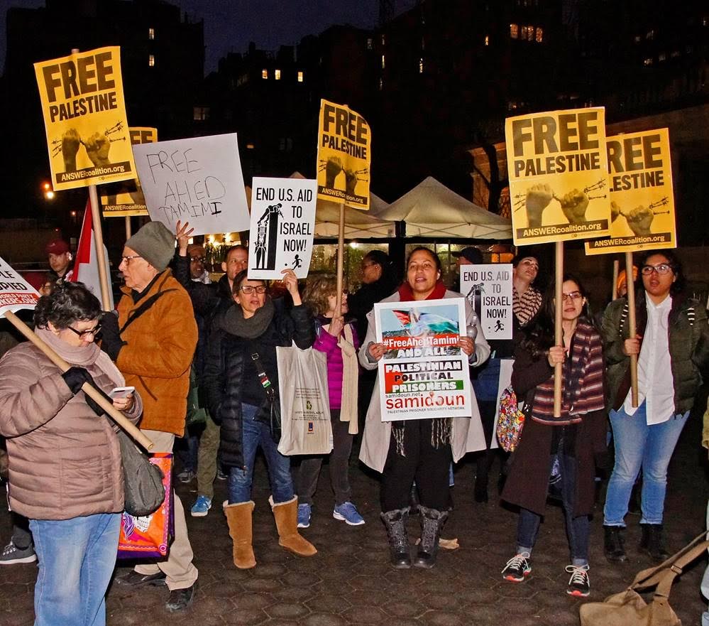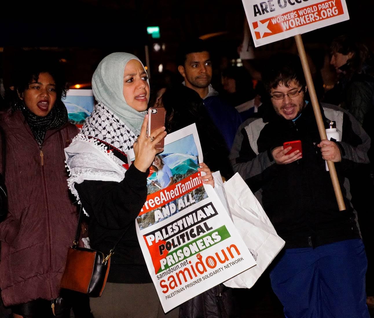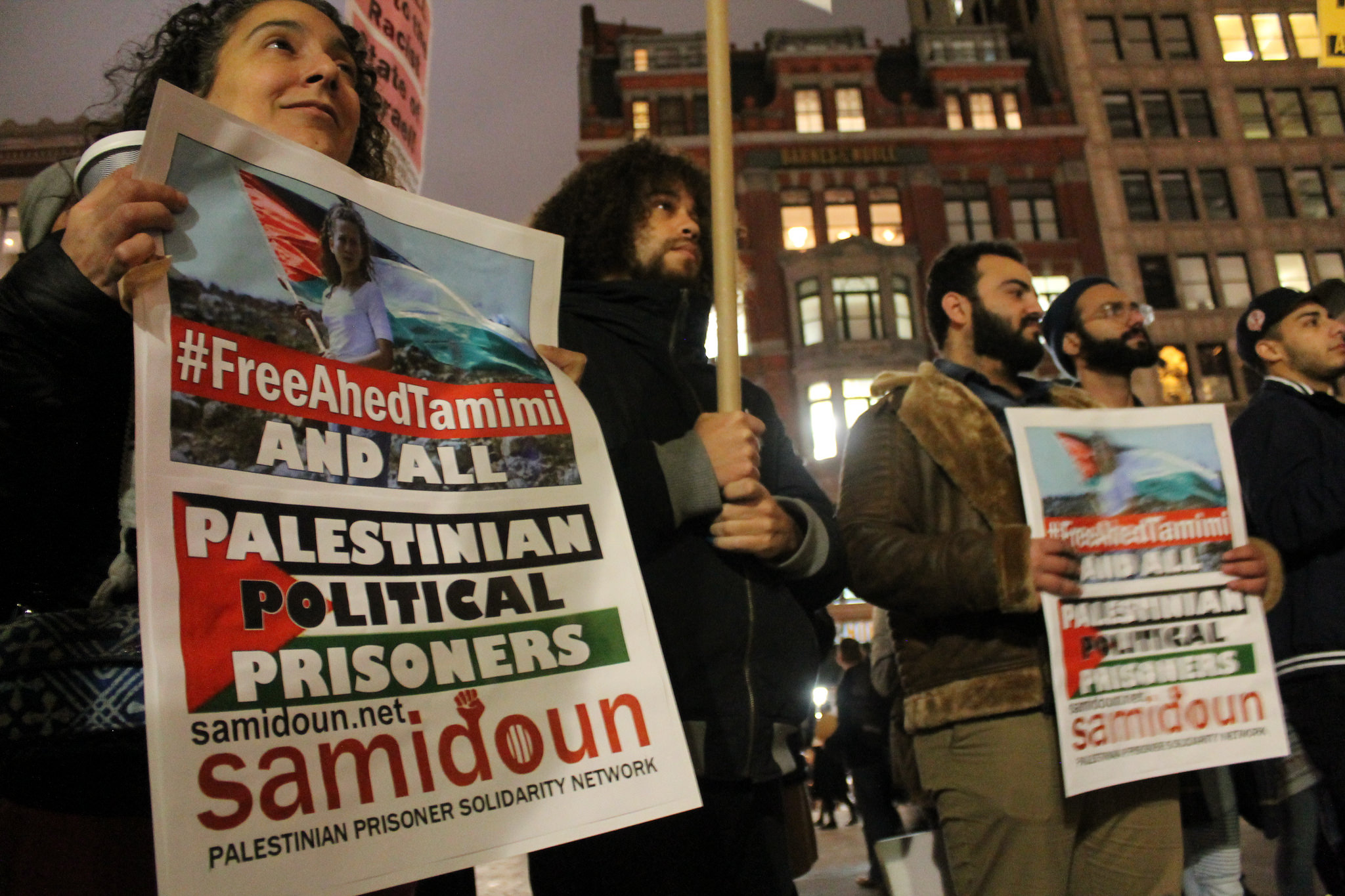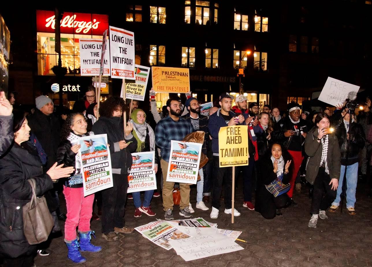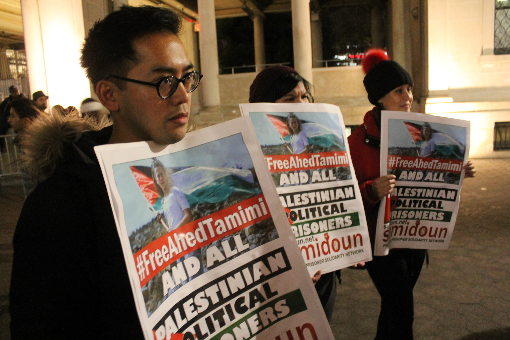 The protest was joined by organizers from many groups, including NYC Students for Justice in Palestine, Samidoun Palestinian Prisoner Solidarity Network, Al-Awda NY, the Palestine Right to Return Coalition, American Muslims for Palestine, the International Action Center, the Palestinian Youth Movement, US Palestinian Community Network, the ANSWER Coalition, Labor for Palestine, Jews for Palestinian Right of Return, BAYAN USA, Stony Brook Students for Justice in Palestine, Workers World Party, Decolonize This Place, Adalah NY and Jewish Voice for Peace. Participants also included members of the Tamimi family living in New York:
