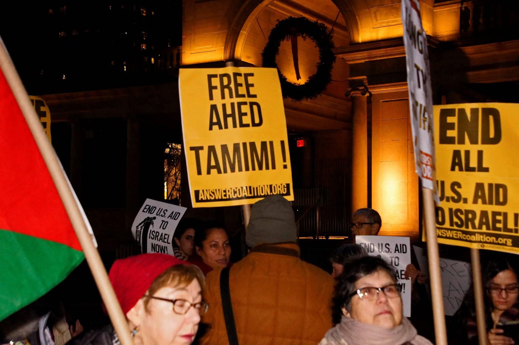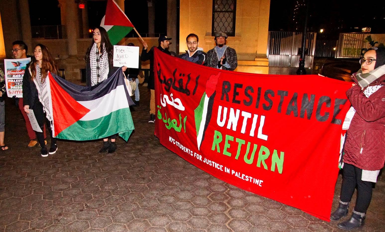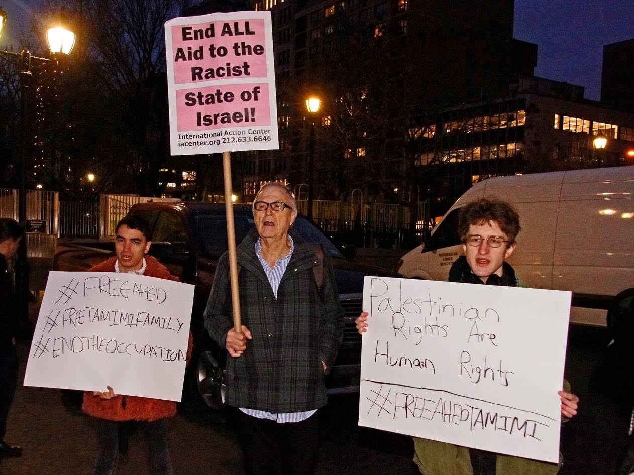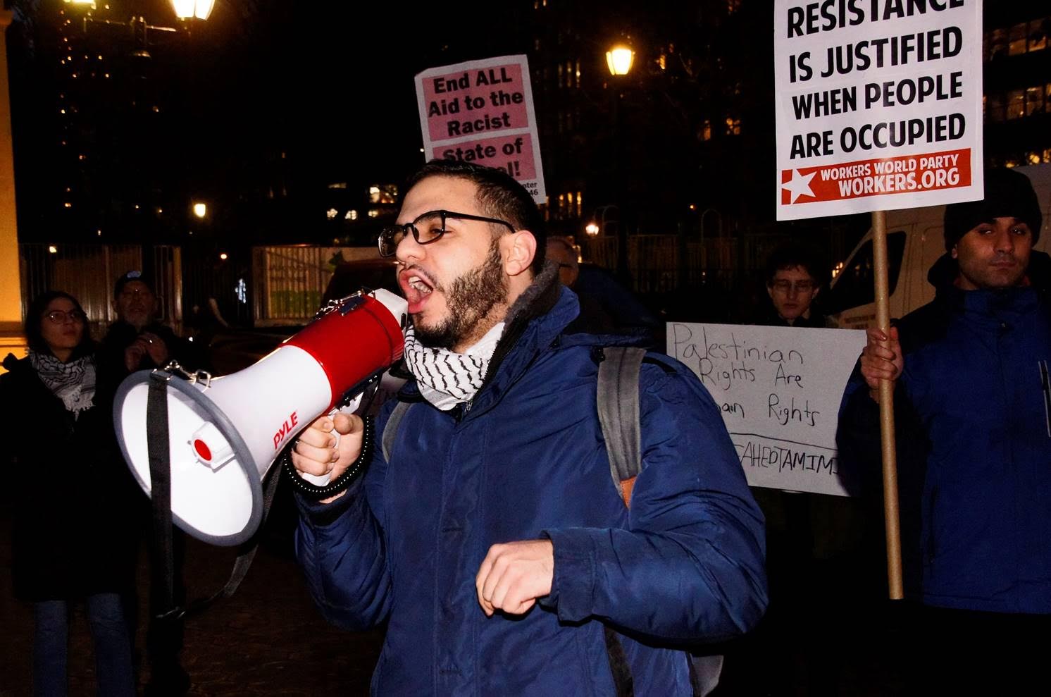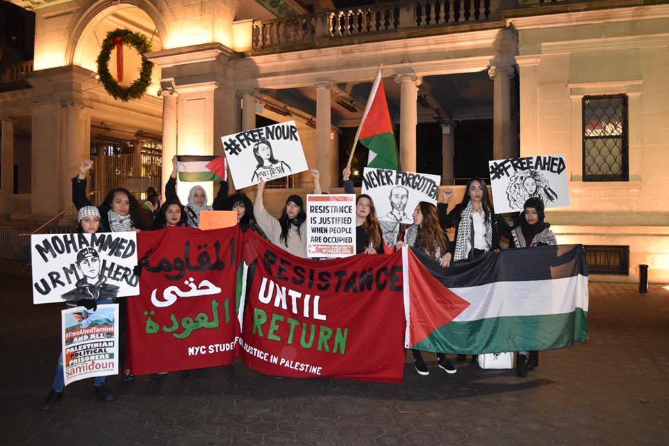 The protest was joined by organizers from many groups, including NYC Students for Justice in Palestine, Samidoun Palestinian Prisoner Solidarity Network, Al-Awda NY, the Palestine Right to Return Coalition, American Muslims for Palestine, the International Action Center, the Palestinian Youth Movement, US Palestinian Community Network, the ANSWER Coalition, Labor for Palestine, Jews for Palestinian Right of Return, BAYAN USA, Stony Brook Students for Justice in Palestine, Workers World Party, Decolonize This Place, Adalah NY and Jewish Voice for Peace. Participants also included members of the Tamimi family living in New York: