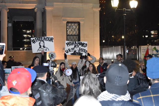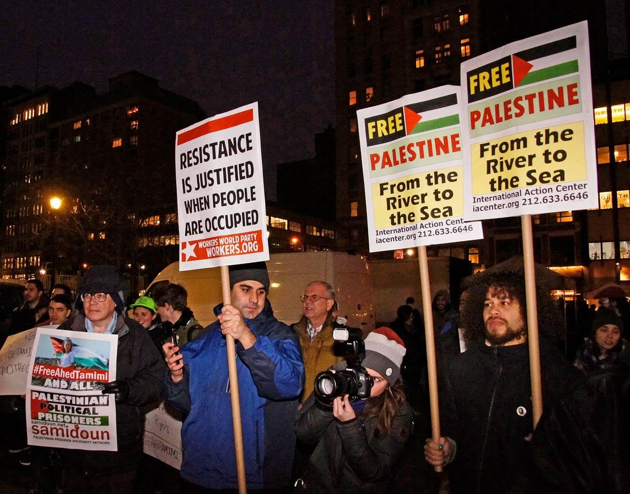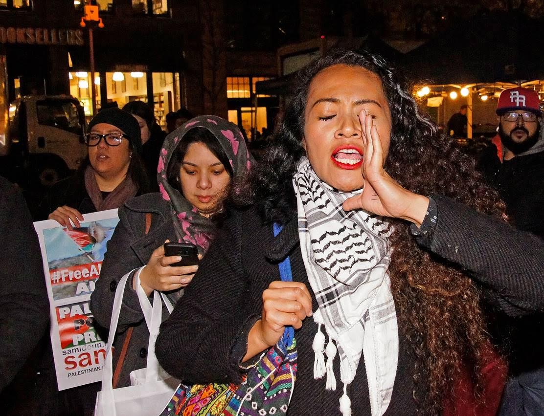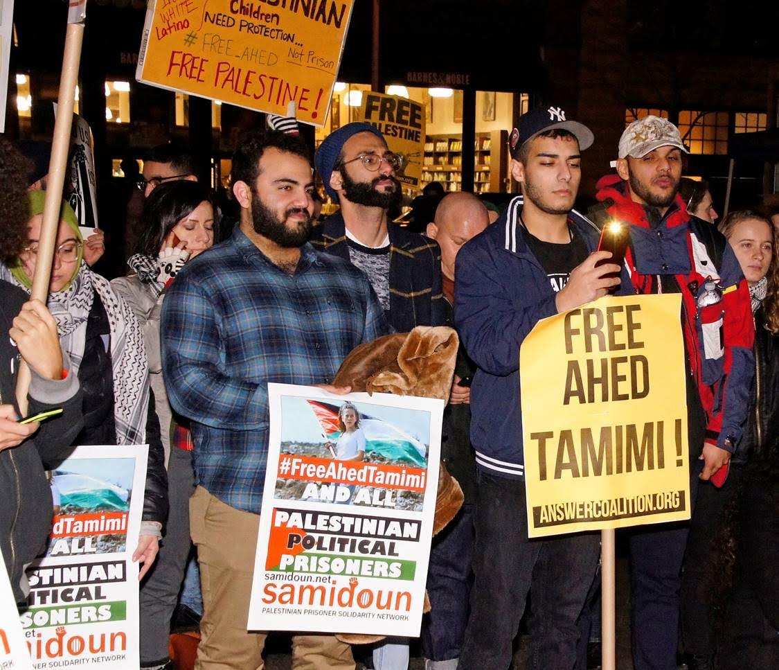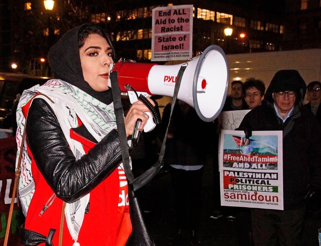 The protest was joined by organizers from many groups, including NYC Students for Justice in Palestine, Samidoun Palestinian Prisoner Solidarity Network, Al-Awda NY, the Palestine Right to Return Coalition, American Muslims for Palestine, the International Action Center, the Palestinian Youth Movement, US Palestinian Community Network, the ANSWER Coalition, Labor for Palestine, Jews for Palestinian Right of Return, BAYAN USA, Stony Brook Students for Justice in Palestine, Workers World Party, Decolonize This Place, Adalah NY and Jewish Voice for Peace. Participants also included members of the Tamimi family living in New York: