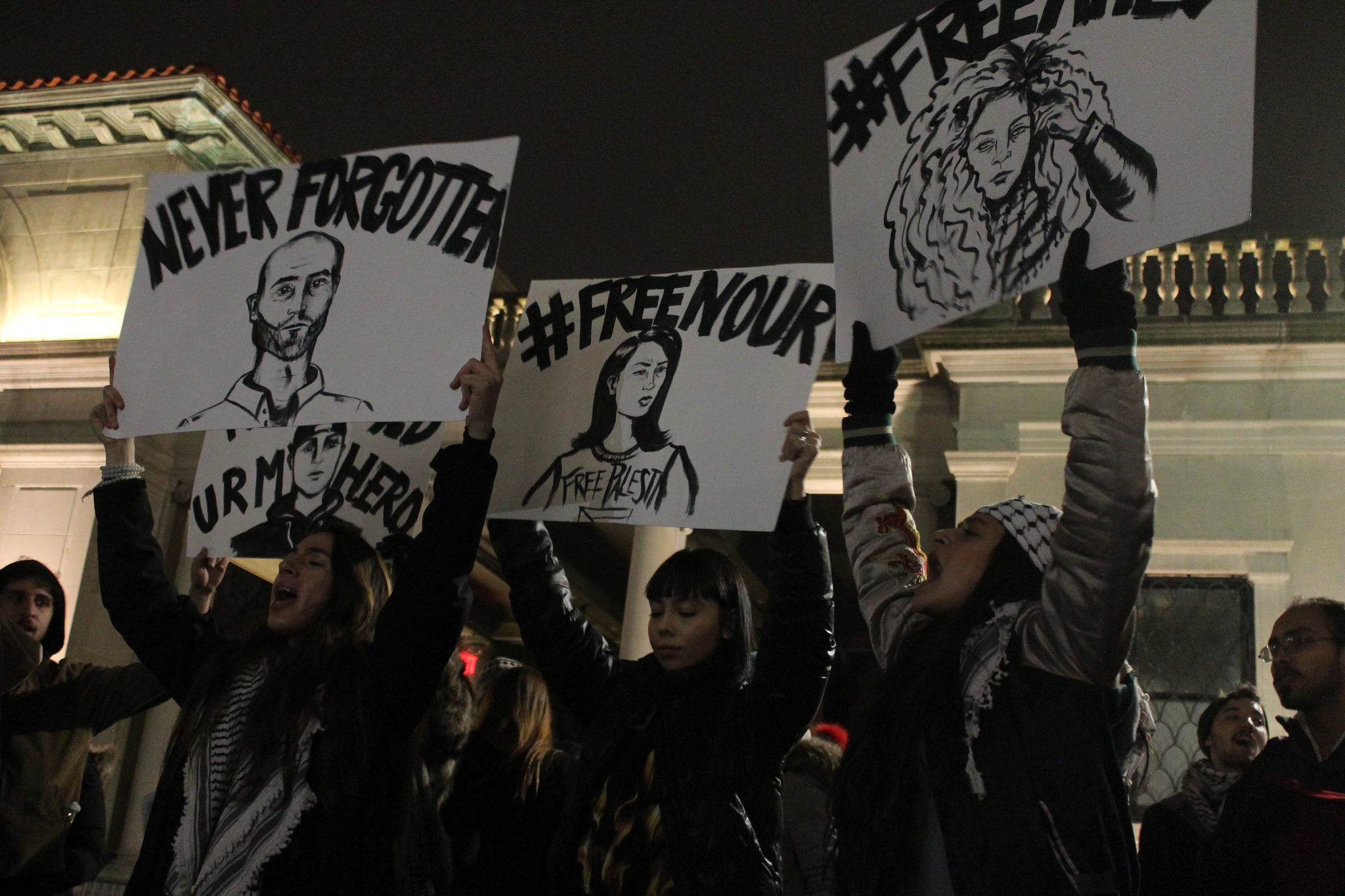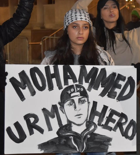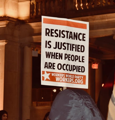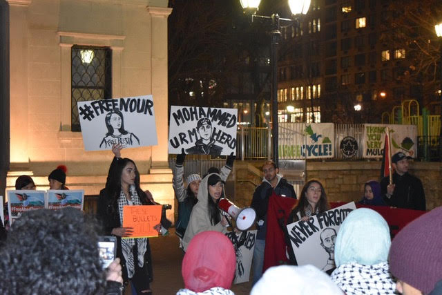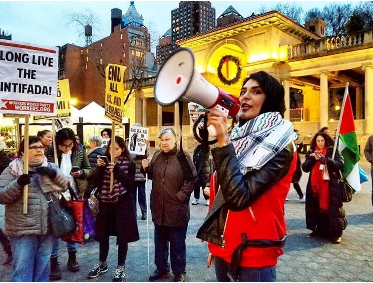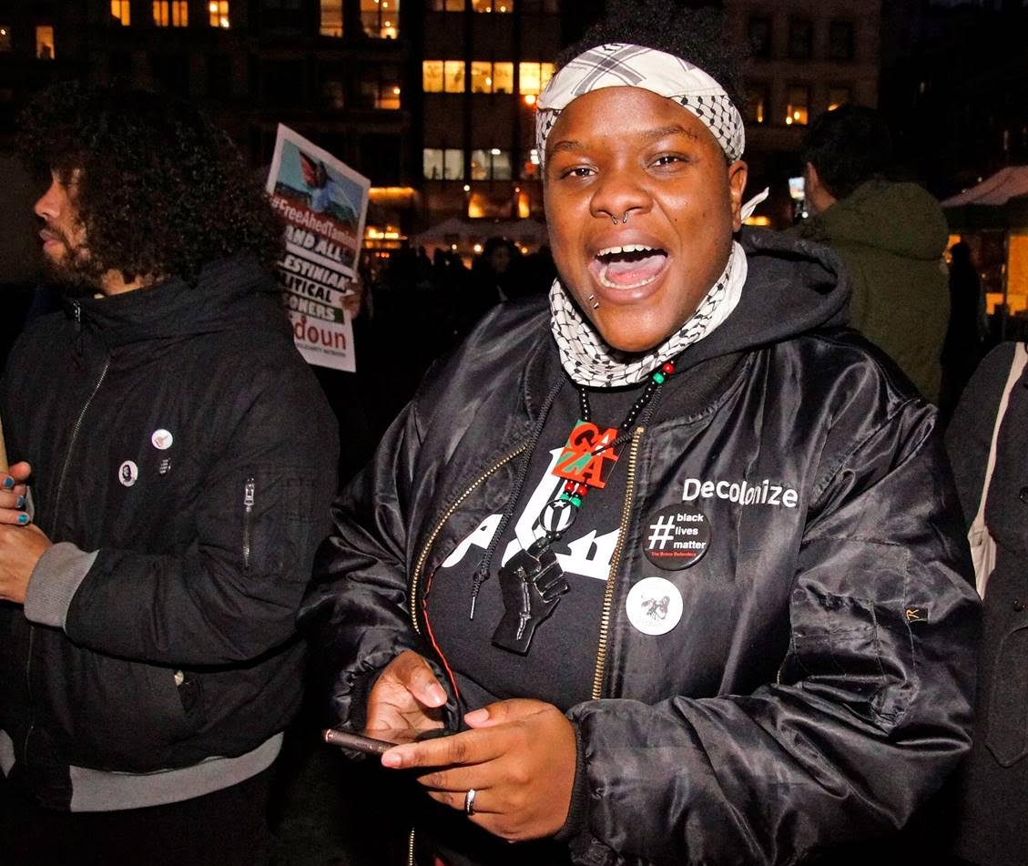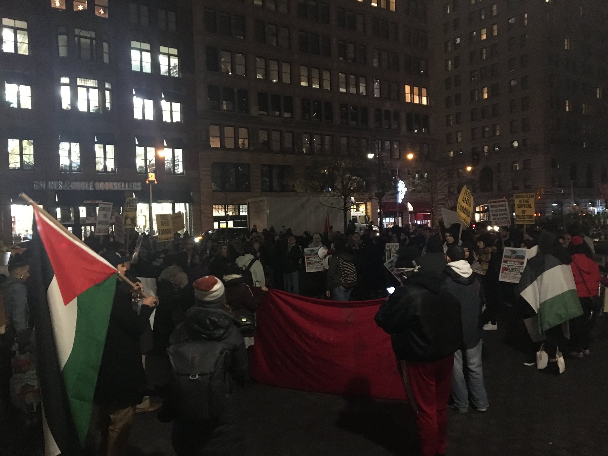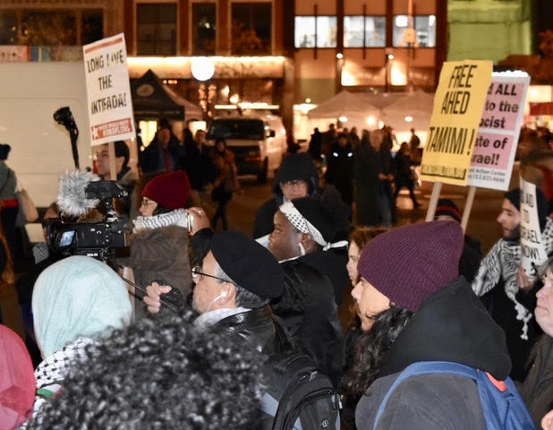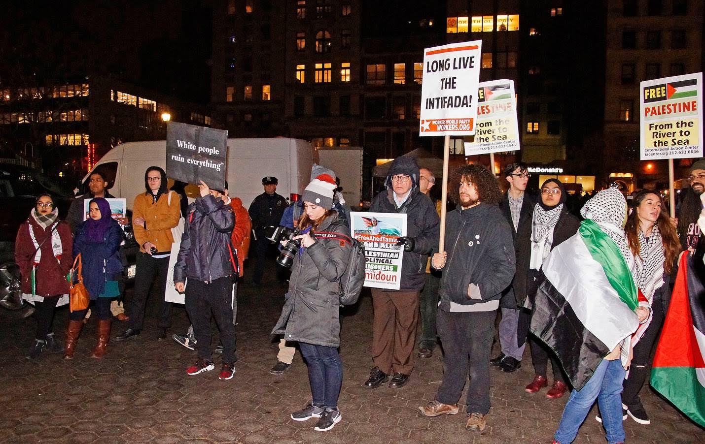 The NY4Palestine coalition organized a demonstration on Friday, 22 December in Manhattan’s Union Square to demand freedom for detained Palestinian teen Ahed Tamimi and fellow Palestinian child prisoners, including detained boy Abdul-Khalik Burnat. The protest highlighted the attack on the Tamimi family, including the detentions of Ahed’s mother, Nariman Tamimi, and cousin, Nour Tamimi. The Tamimi women are leaders in the indigenous anti-colonial Palestinian resistance in the village of Nabi Saleh, where they organize to defend the agricultural village’s land and water from frequent attacks by Zionist occupation soldiers and settlers.