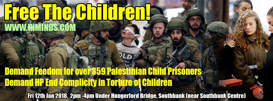 Please join us to demand HP end its complicity in the torture and caging of Palestinian children; and demand freedom for the children; and freedom for all Palestinian political prisoners.