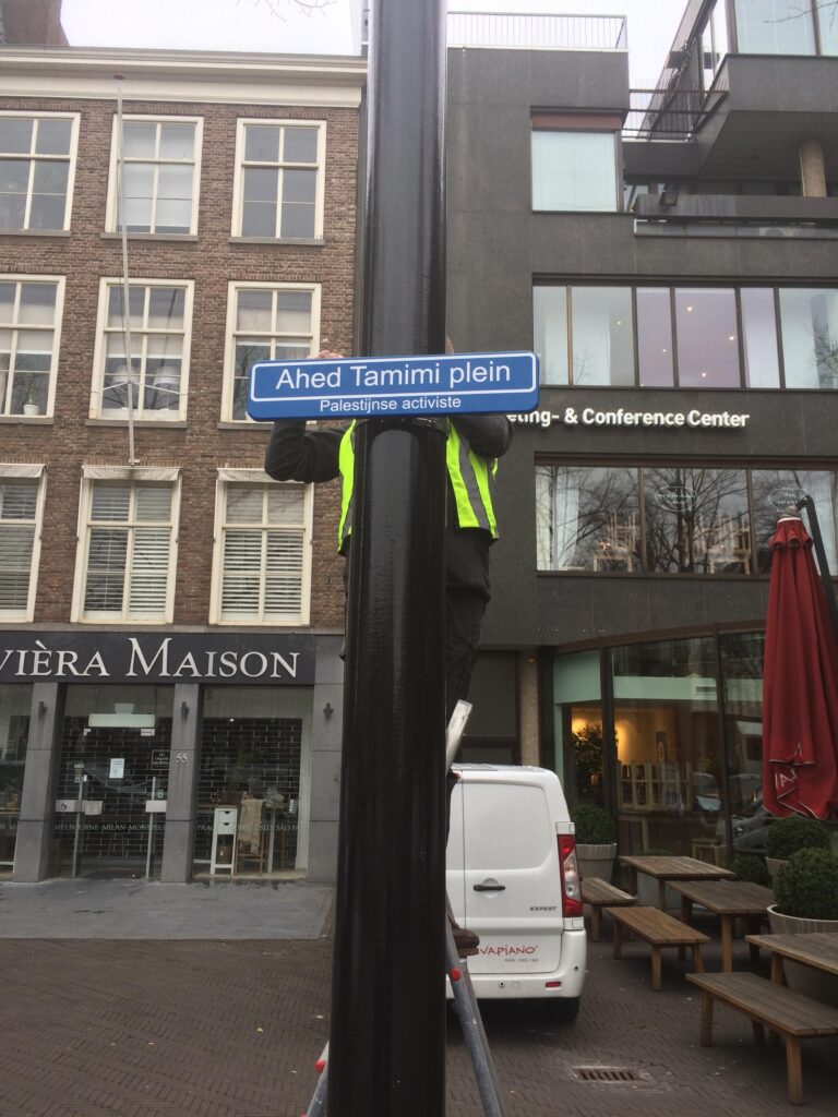 Activists in the Netherlands changed street names in 13 Dutch cities who “woke up with an additional street name” on 23 March; placards and street signs had been placed around the cities labeling important thoroughfares “Ahed Tamimi street.” MovementX and DocP, two Dutch organizations that advocate for Palestinian rights, posted the grassroots street signs in Amsterdam, The Hague, Rotterdam, Groningen, Leeuwarden, Grijpskerk, Assen, Leiden, Heemstede, Tilburg, Vlaardingen and Nijmegen.