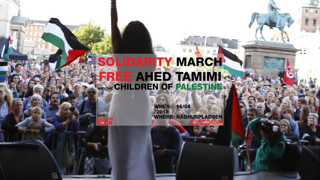 Join Mellemfolkeligt Samvirke Aarhus in a solidarity march calling to free 17 year old Ahed Tamimi and the unjustly imprisoned children of Palestine.
