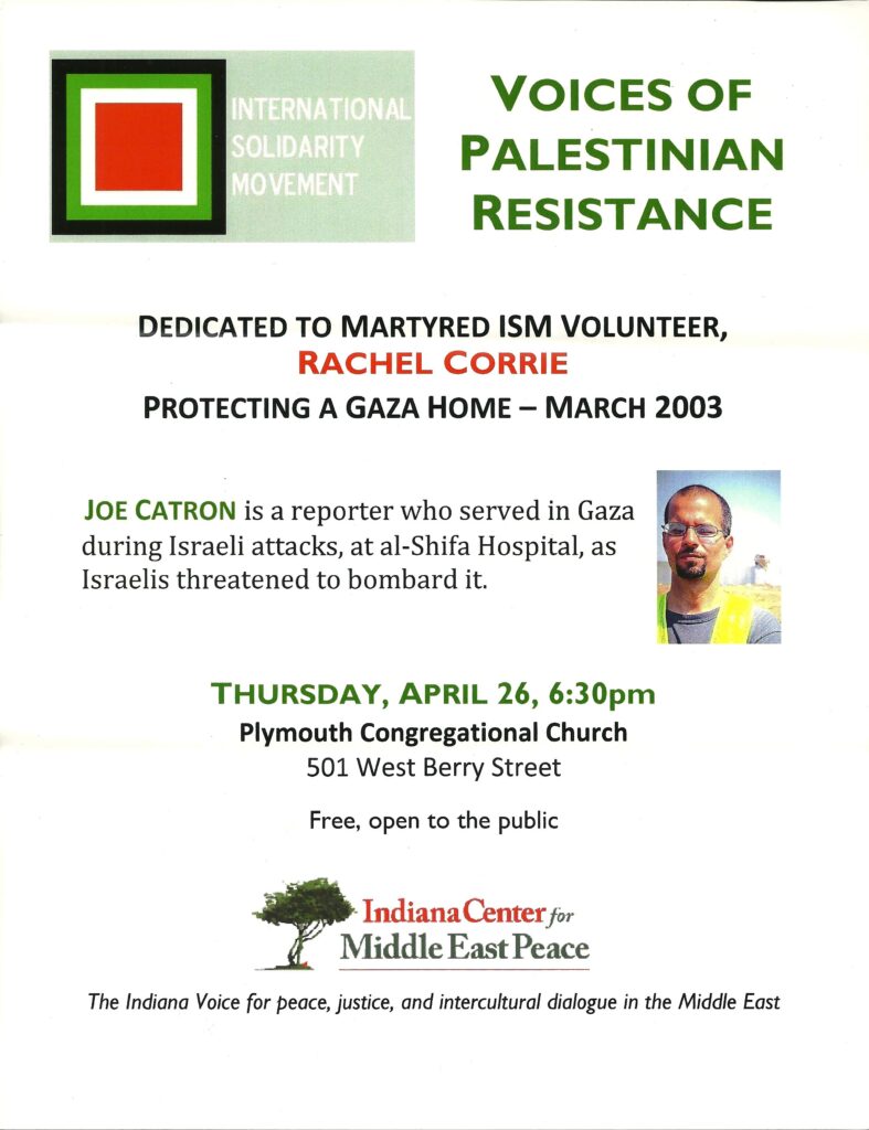 The ICMEP in cooperation with the International Solidarity Movement-Northern California (ISM) invite you to attend a presentation on the ISM’s work in Palestine.