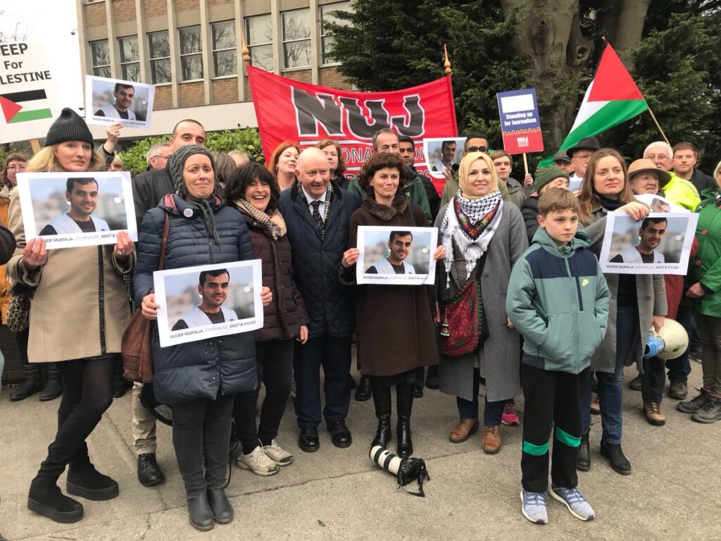 In London, the National Union of Journalists held a vigil in remembrance of Murtaja on 12 April, calling for justice and accountability for his killing. Participants carried Palestinian flags and photos of Murtaja.
