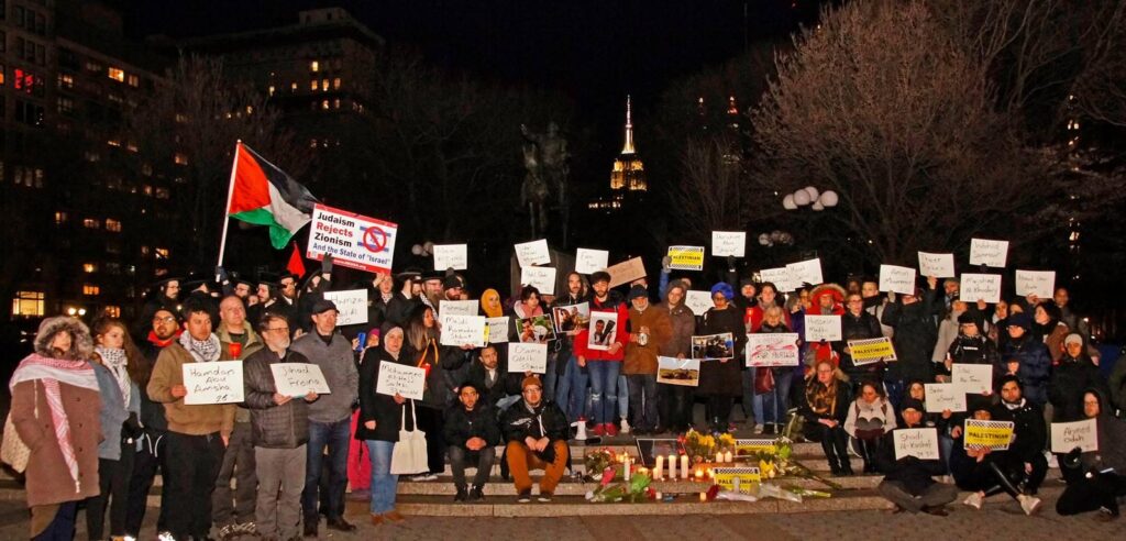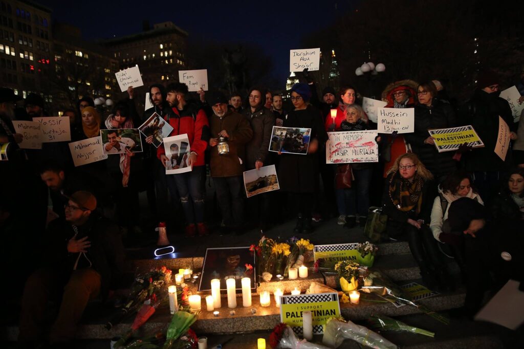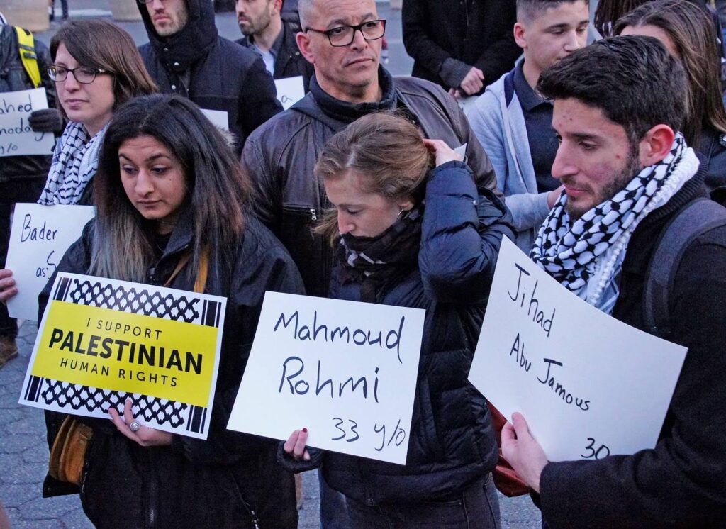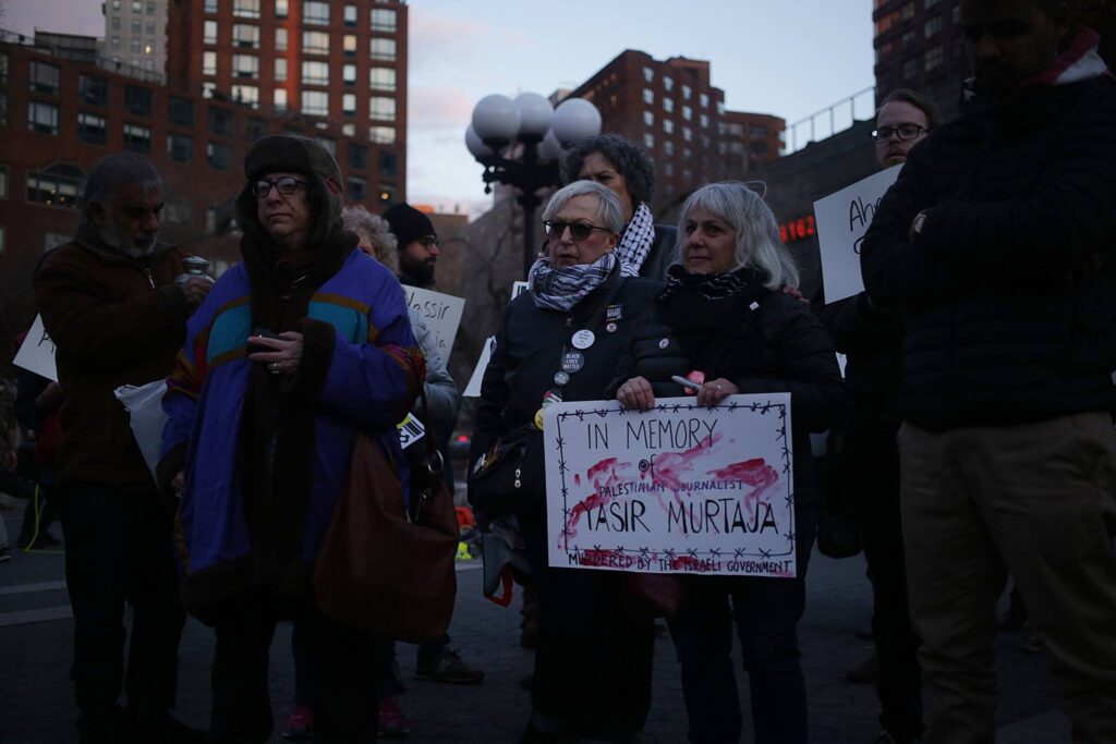 In New York City, crowds, including local organizers with Samidoun Palestinian Prisoner Solidarity Network and many other Palestinian and solidarity organizations, gathered in Union Square on 8 April for a vigil remembering Murtaja. The demonstration was organized by Palestinian youth who had worked with and befriended Murtaja, including Walaa al-Ghussein, Nour’s sister.