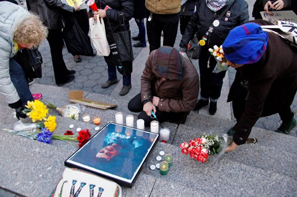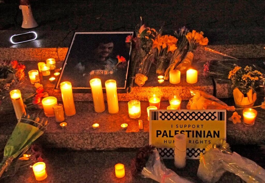 In Portland, Oregon, people gathered with candles and flowers, laying them before a Palestinian flag with photos of Murtaja on 10 April.
