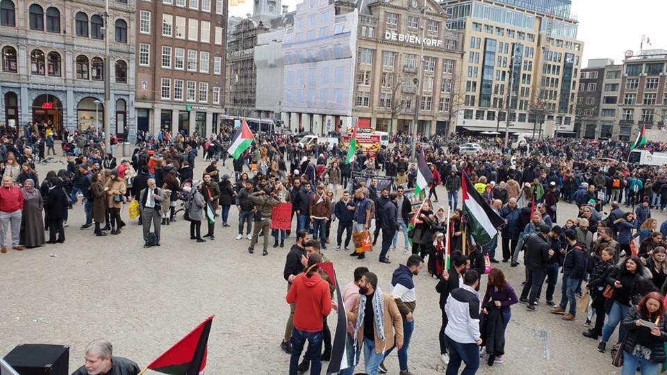 In Amsterdam, the Palestinian House organized a commemoration of Land Day in Dam Square on Saturday, 31 March. After the massacre on Friday, a large crowd attended the event, which included demands for an end to the massacres and siege in Gaza as well as dabkeh and cultural performances.