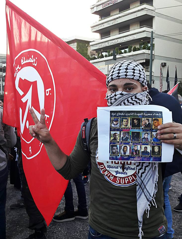 In Athens, a spirited crowd of demonstrators marched to the Israeli embassy on Saturday, 31 March. There, they chanted and sang Palestinian songs, carrying Palestinian flags and banners and demanding the Israeli embassy leave Greece. In response, the protesters were attacked by police surrounding the embassy. Tear gas was fired on the demonstrators and several protesters were beaten by police after they fell to the ground.