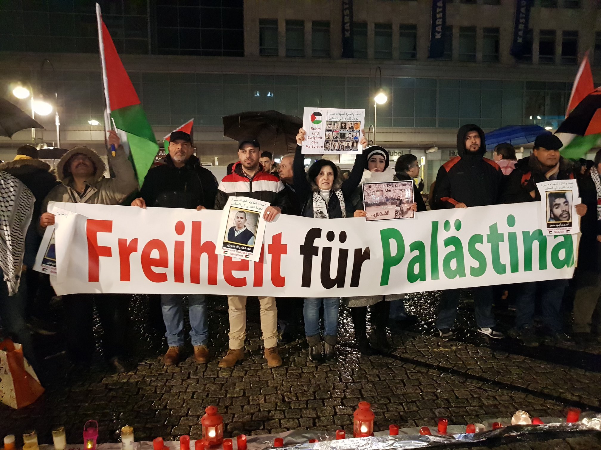 In Berlin, demonstrators gathered at Hermannplatz in the Neukolln neighborhood on Sunday, 1 April to honor the martyrs and demand an end to the attacks on Palestinians in Gaza. Organized by the Palestinian National Action Commission in Berlin, the protesters held candles and signs calling for freedom for Palestine. Participants carried banners and waved Palestinian flags on the cold, rainy evening.