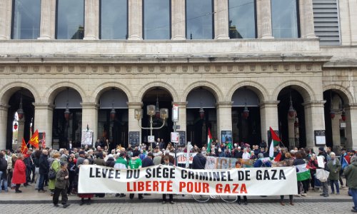 In Lille, a large crowd came out on Sunday, 1 April for a morning protest to denounce the massacre and call for boycott of Israel. Participants included AFPS, EuroPalestine and many members of the Young Communists and France Insoumise, while in Lyon, another crowd gathered on 2 April, including Collectif 69 Palestine, EuroPalestine, AFPS and UJP. They saluted the Great Return March and highlighted the importance of Palestinian refugees’ right to return home.