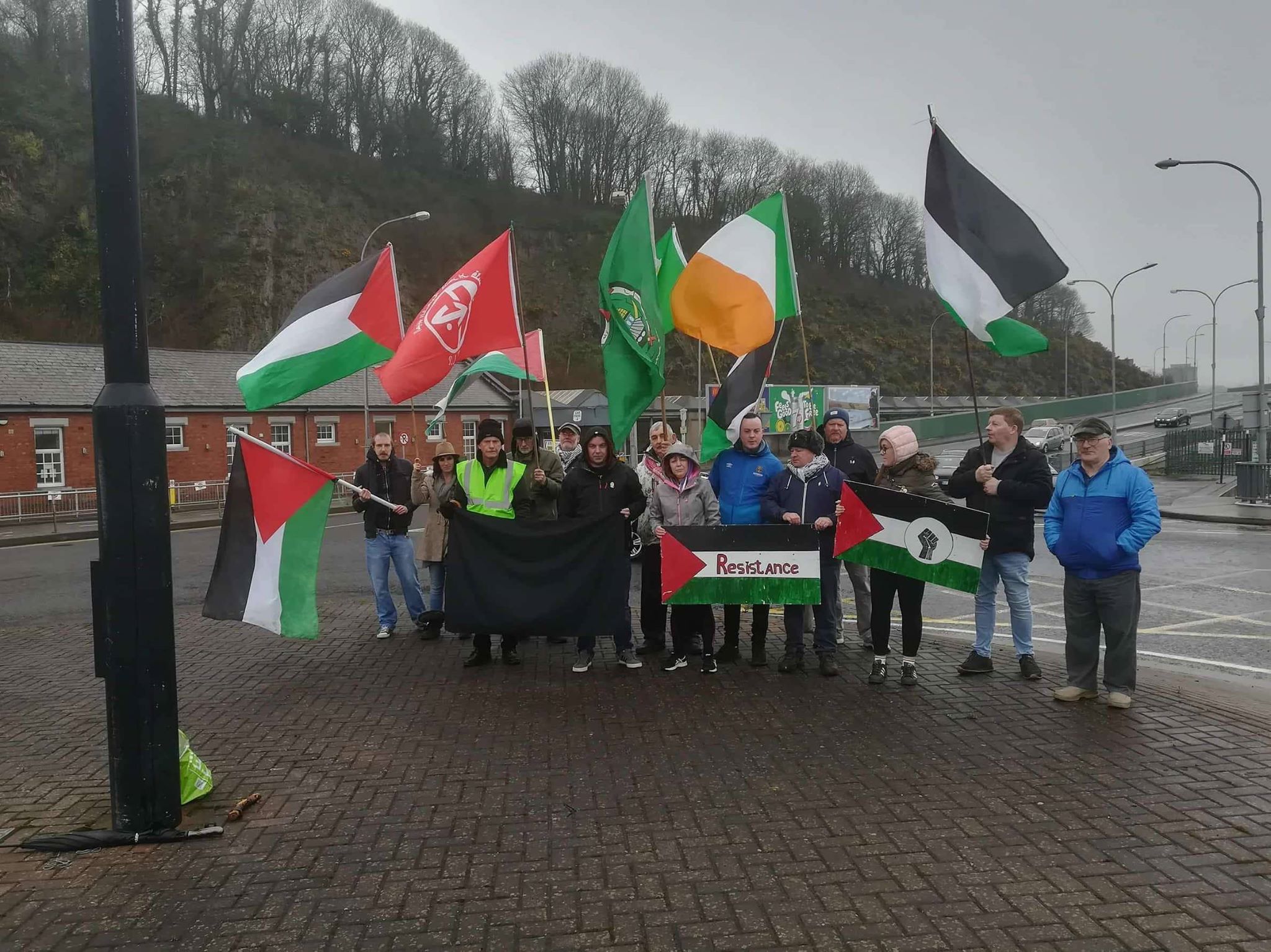 Protests took place in a number of cities around Ireland, including Derry and Dublin. As part of Easter Rising commemorations throughout Ireland, participants carried Palestinian flags and honored the Palestinian anti-colonial struggle alongside the Irish one, while in Waterford, an action on 2 April organized by Anti-Internment Munster as well as local chapters of the Ireland Palestine Solidarity Campaign called for the expulsion of Israeli diplomats from Ireland.
