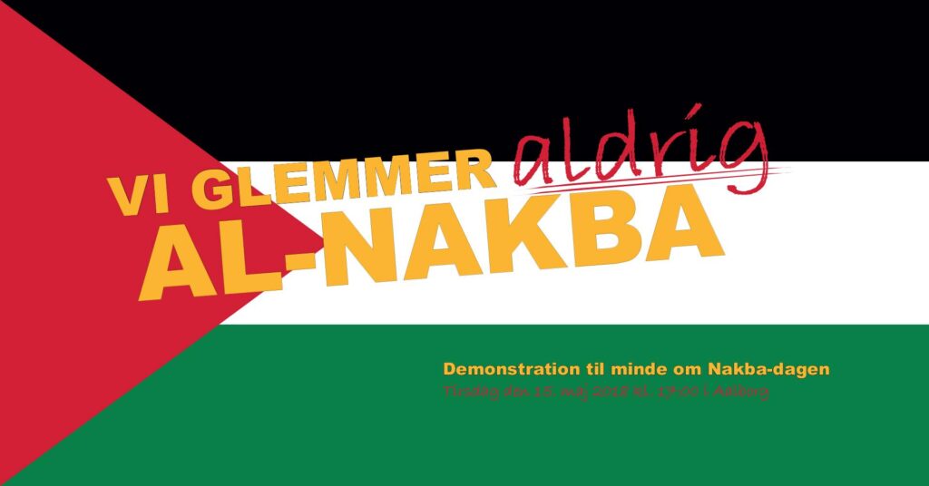On 15 May, we mark the 70th anniversary of the creation of the state of Israel and the displacement of the Palestinians from their homeland – al-Nakba. At Gammeltorv in Aalborg, we will meet at 5 pm on Nakba day to remember the catastrophe. There will be political speeches by city council member Per Clausen and Palestinian associations. There will also be Palestinian dance and music as well as the opportunity to learn more about the situation of the Palestinian people today.