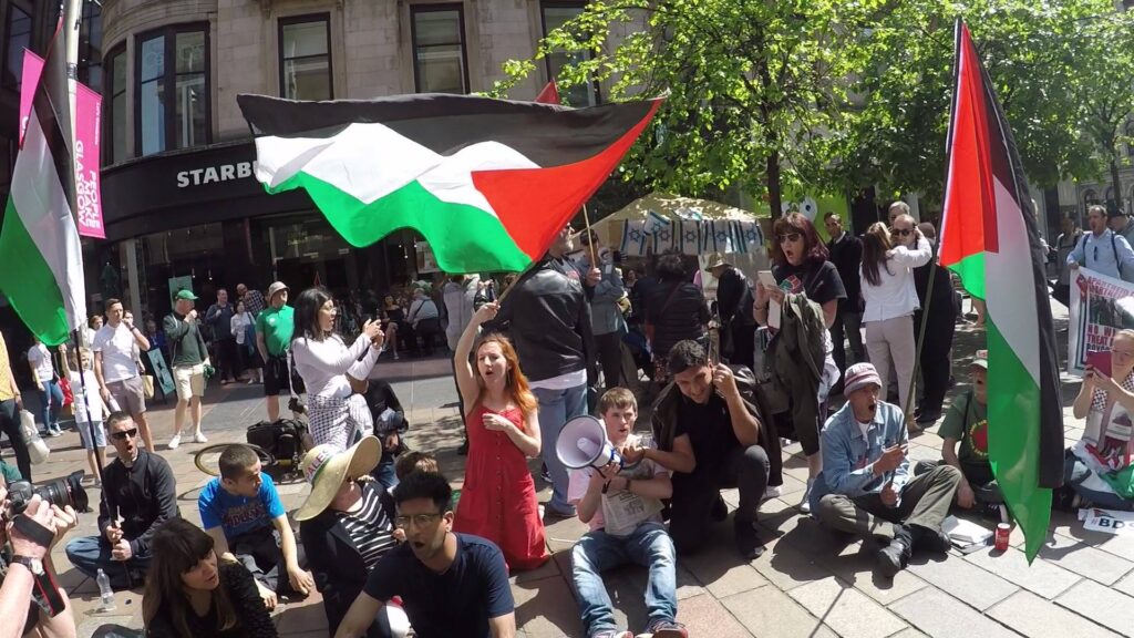 After last Saturdays excellent sit down protest around the Glasgow Friends of Israel (GFI) stall, and the vote of people taking part to continue our active street solidarity with Palestine, join us again on the streets of Glasgow this Saturday.