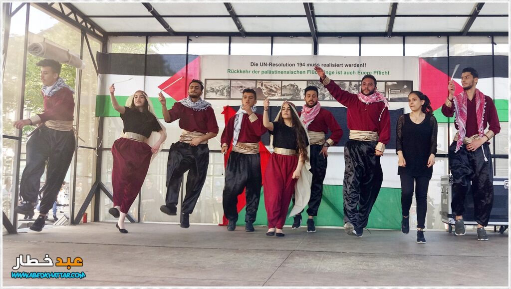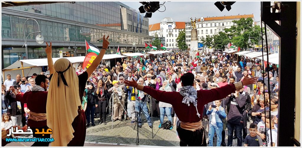 On 12 May, the Palestinian Committee to Commemorate the Nakba held a large festival in Hermannplatz with a full day of booths, speakers and cultural performances, including cultural dances performed by the Al-Awda Dabkeh Troupe. The event included an audio message from Archbishop Attallah Hanna in Palestine, saluting the participants and organizers and urging the continuation of the Palestinian struggle. Hundreds of people participated in the festival throughout the day, including Palestinian community members and solidarity activists.