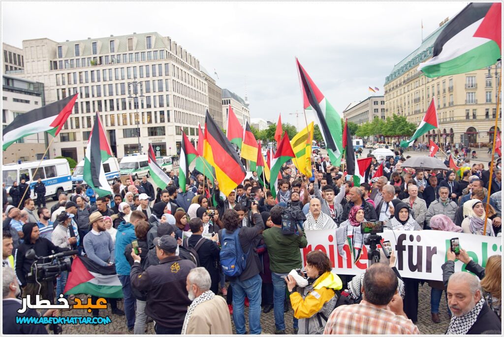 The actions continued on 14 May with two actions organized to commemorate the Nakba and protest the massacre of 61 Palestinians in Gaza by Israeli occupation forces on the same day. The Palestinian Committee to Commemorate al-Nakba gathered in front of the Brandenburg Gate for a protest in solidarity with the Great Return March.