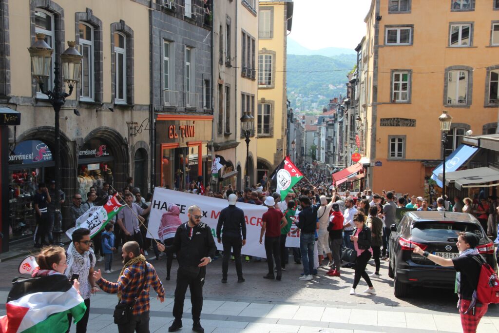 Après une chaîne humaine, la manifestation en solidarité des morts palestiniens part de la place de Jaude pour rejoindre la place de la Victoire. Aux cris de « Israël Assasin, Macron Complice » #Palestine pic.twitter.com/T0AzGMqg7s