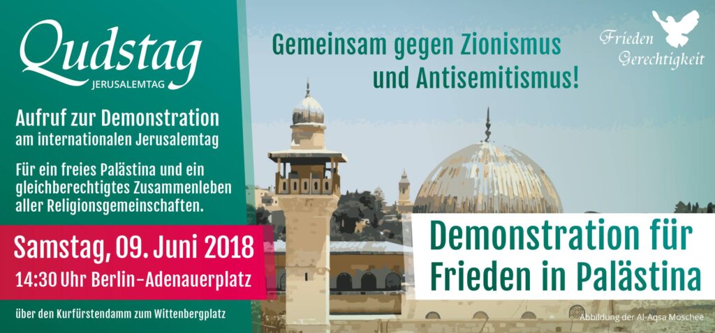 For a free Palestine and a just coexistence of all religious communities. Toggether against Zionism and anti-semitism. Demonstration for peace in Palestine.