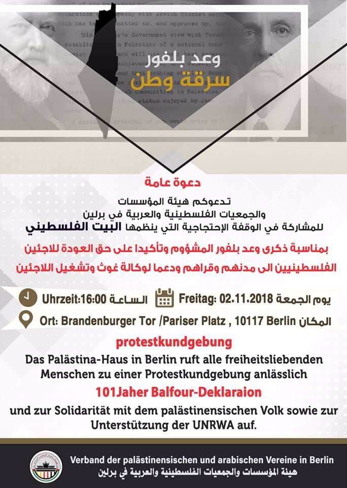 101 years – the Declaration of shame must not be forgotten! Balfour’s promised has created over 7 million refugees, justifying ethnic cleansing and land theft. Protest!