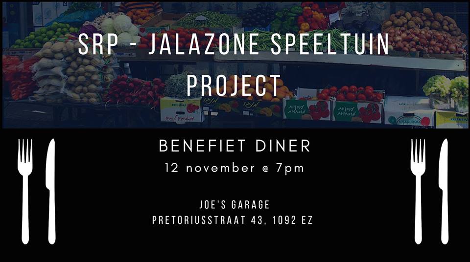 SRP’s monthly benefit dinner in Joe’s Garage is part of our fundraising campaign for Jalazone, a project to support building a playground for the children in the camp.