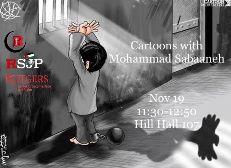 Come join RU-N Muslim Student Association and Students For Justice in Palestine for an event with political cartoonist Mohammad Sabaaneh on November 19th from 11:30 AM to 12:50 PM in Hill Hall, Room 107.